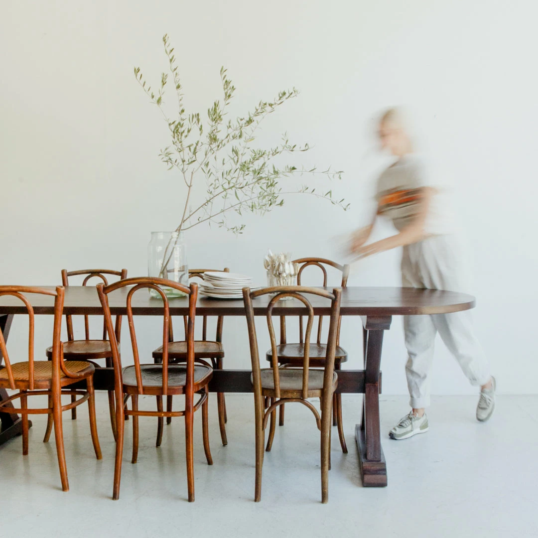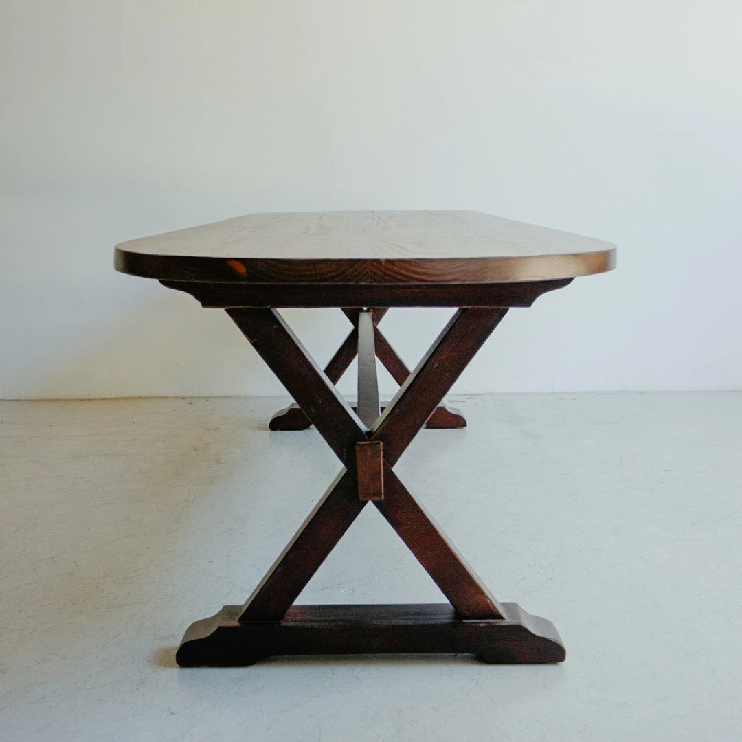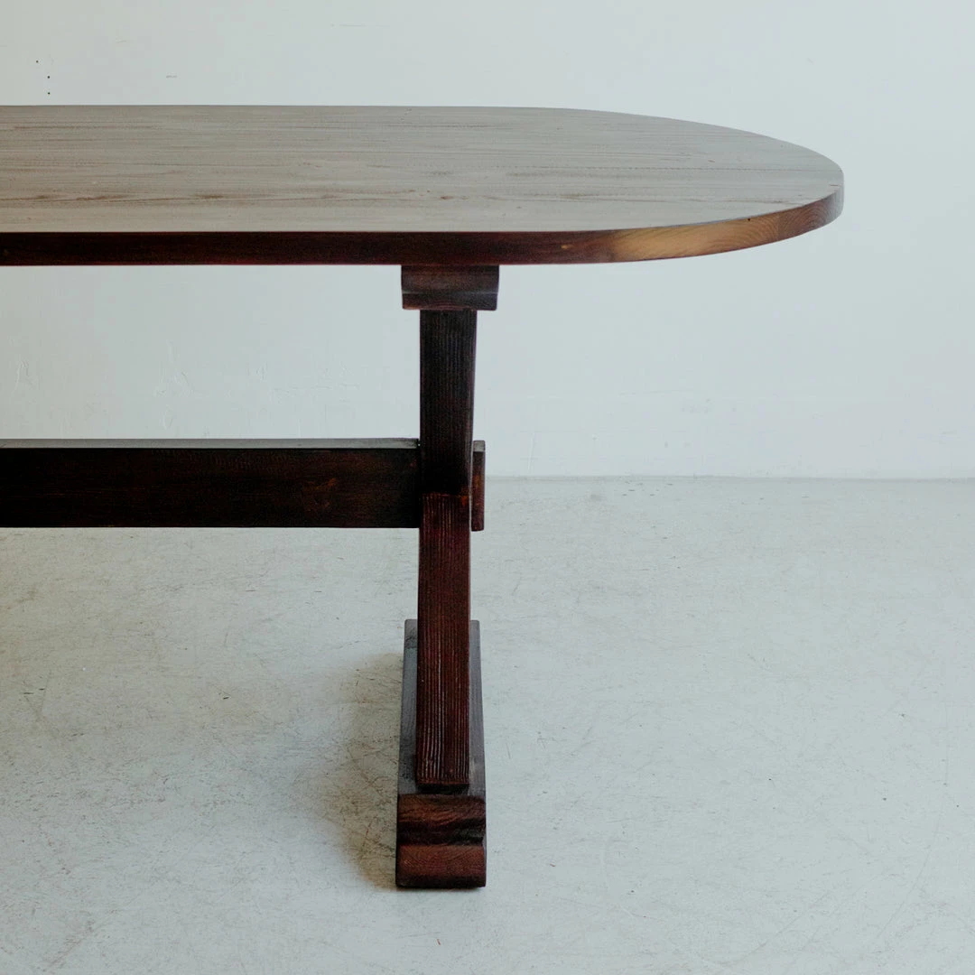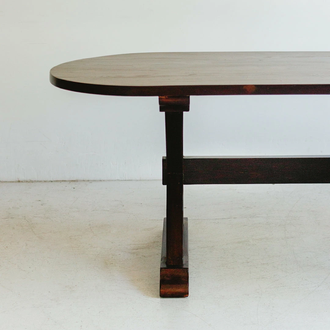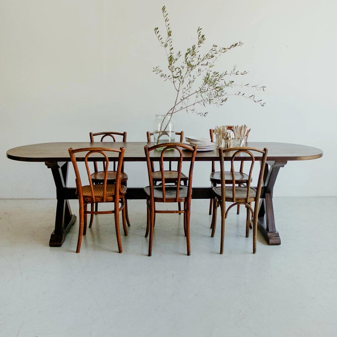 - Theย oval trestle tableย has the same beautiful design language as our classic Forager Dining Table with a slimmer scale base and a graceful oval top.