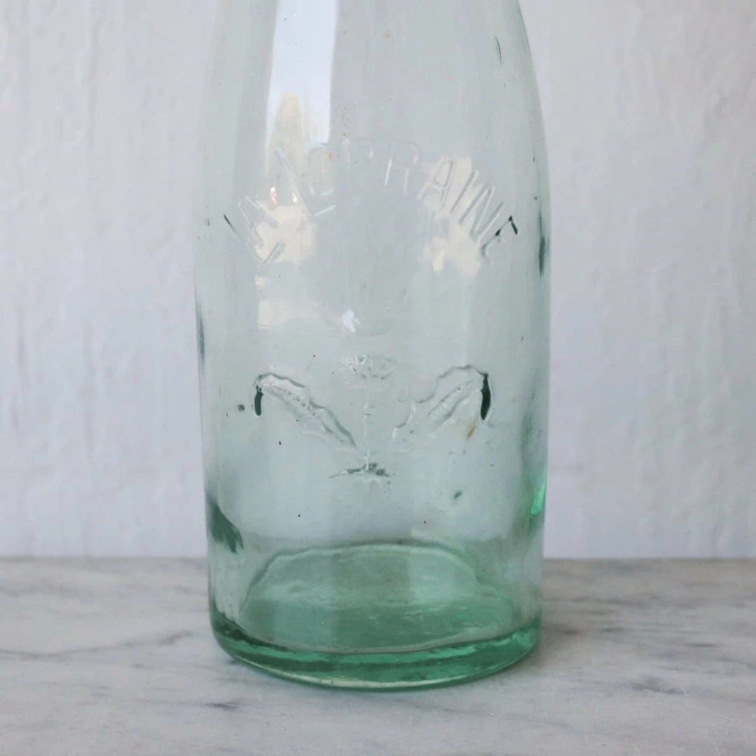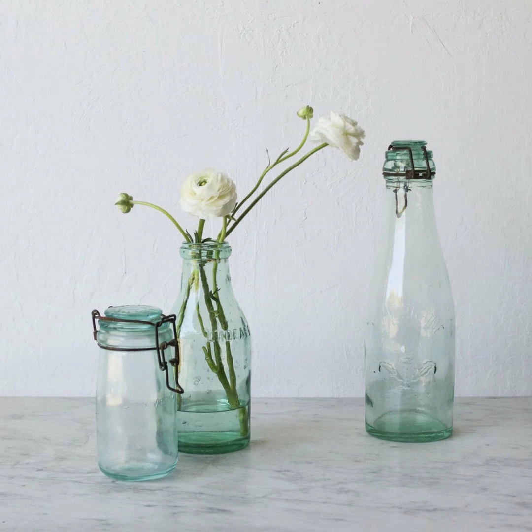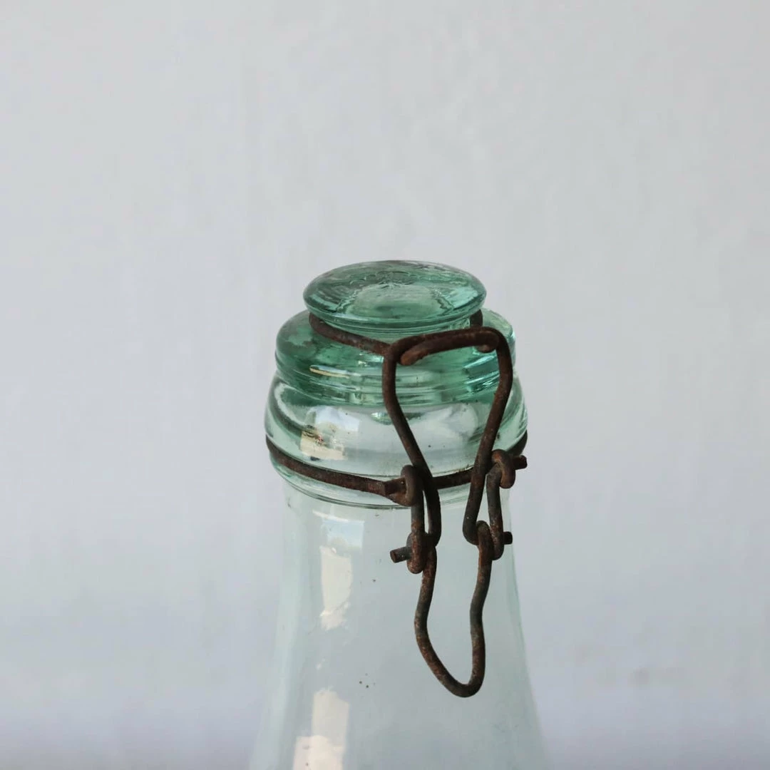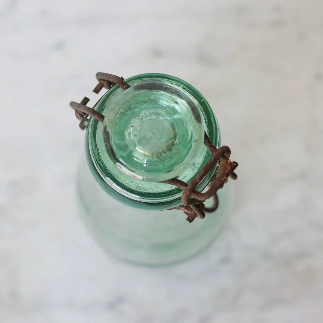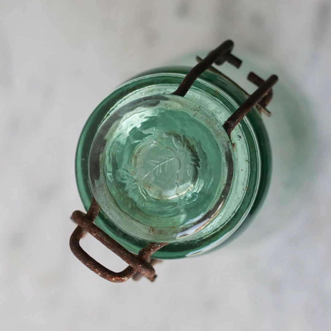 We met a collector at a brocante in Le Mans and somehow got ourselves invited back to his farmhouse where he had a big and beautiful collection of these vintage French canning jars.ย This example isย made from heavy green glass and embossed with the La Lorraine mark.ย ย