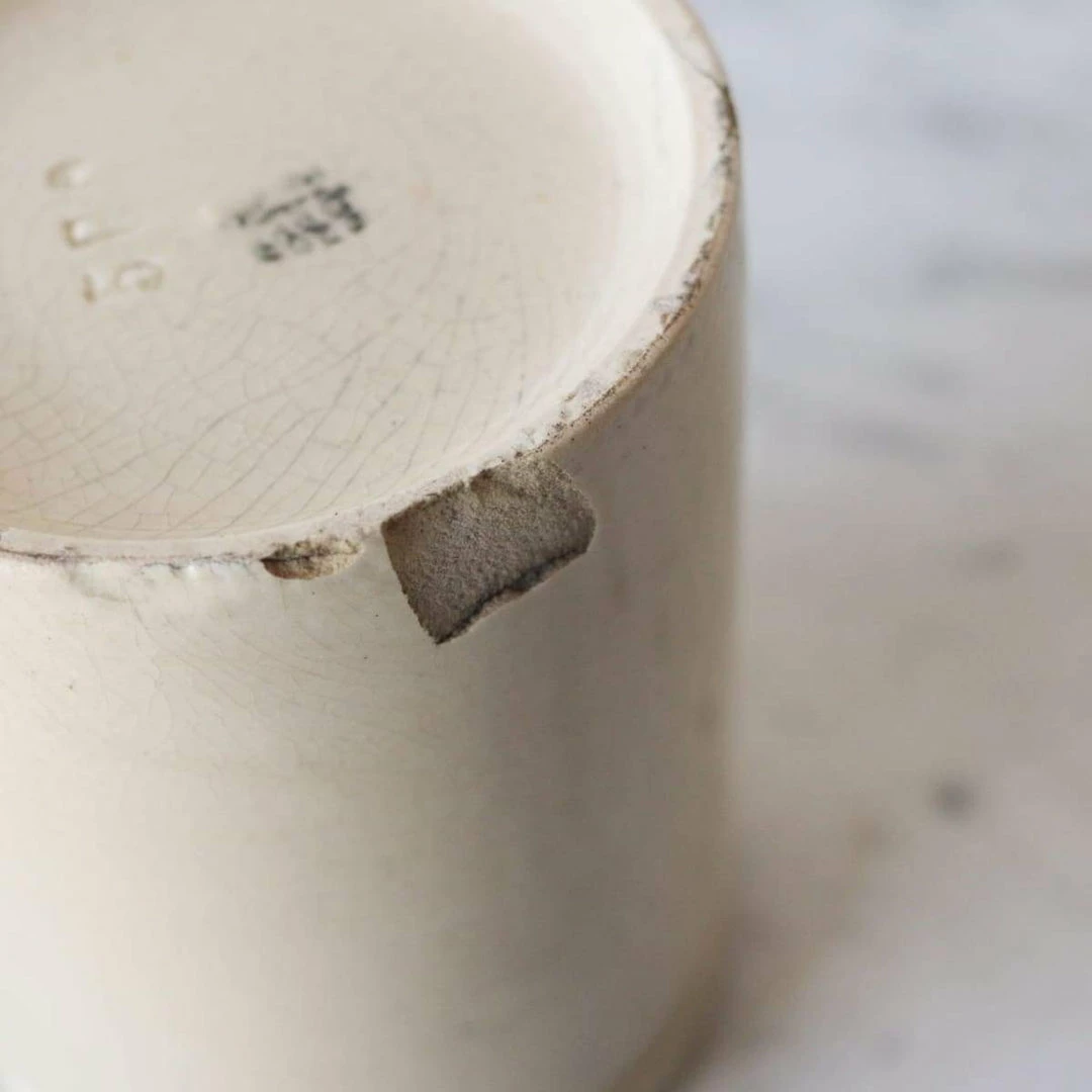 This lovely confiture crock was once used for storing jam in a French kitchen. Now we think it’s a lovely little cachepot for your herbs, or cellar for salt in your kitchen.