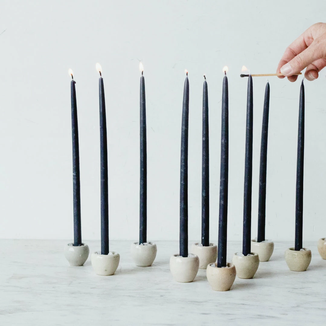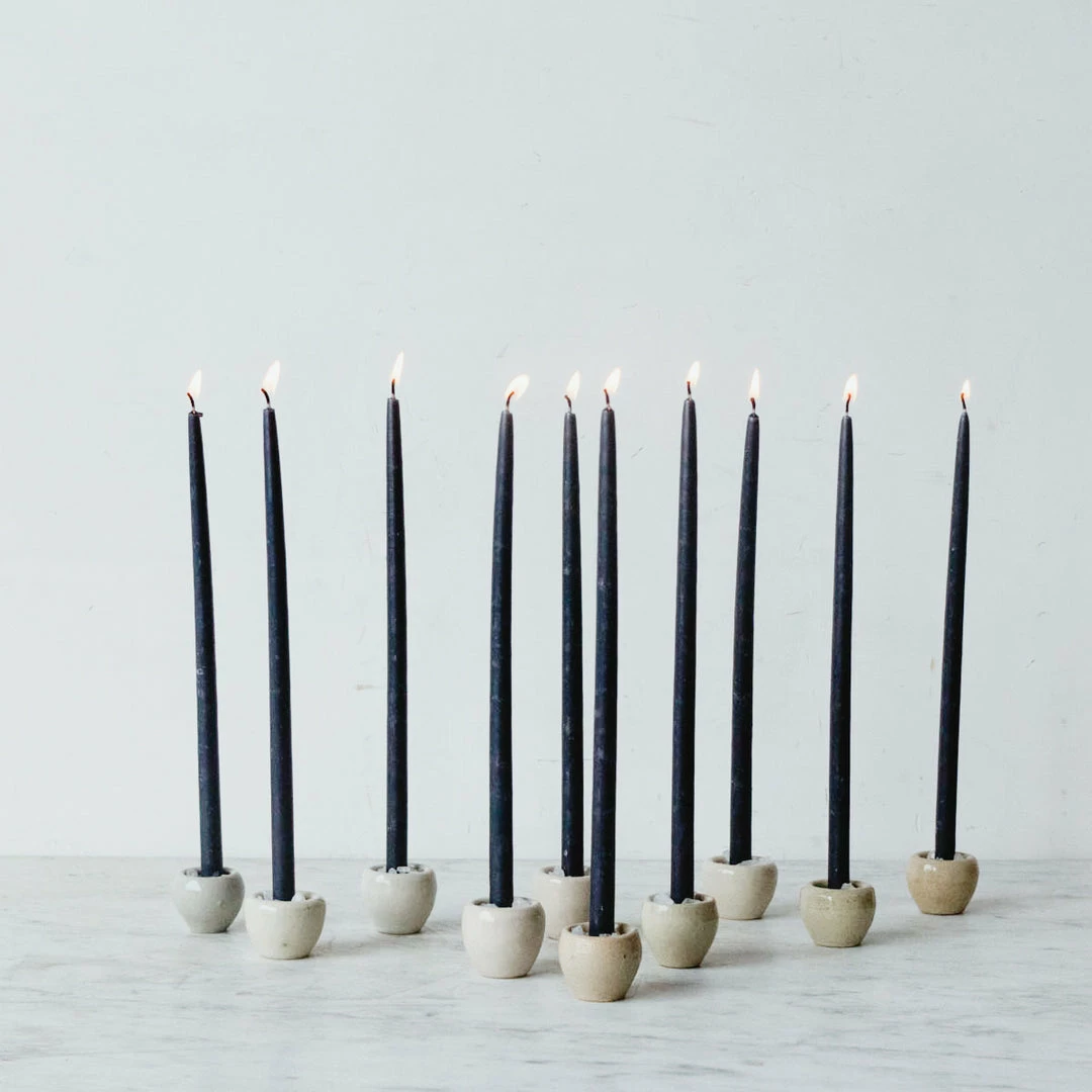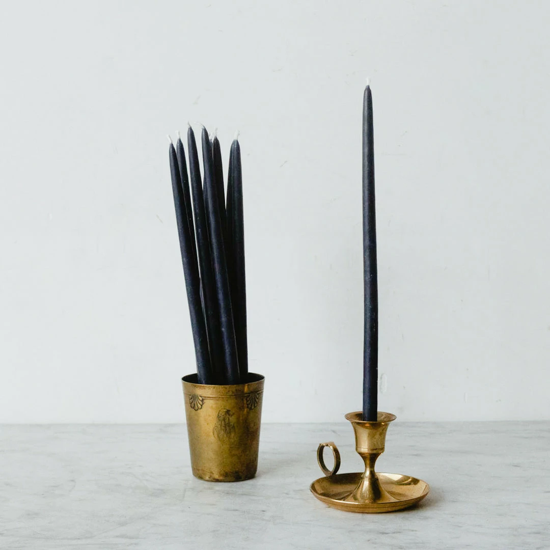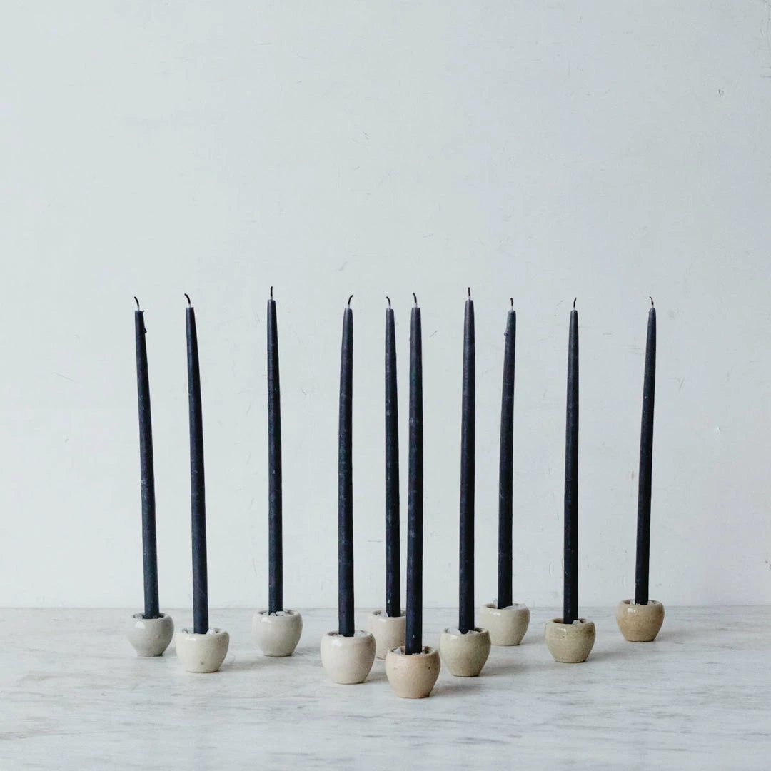 These beeswax tapers burn clean and bright and give off the faintest beeswax fragrance as they burn.