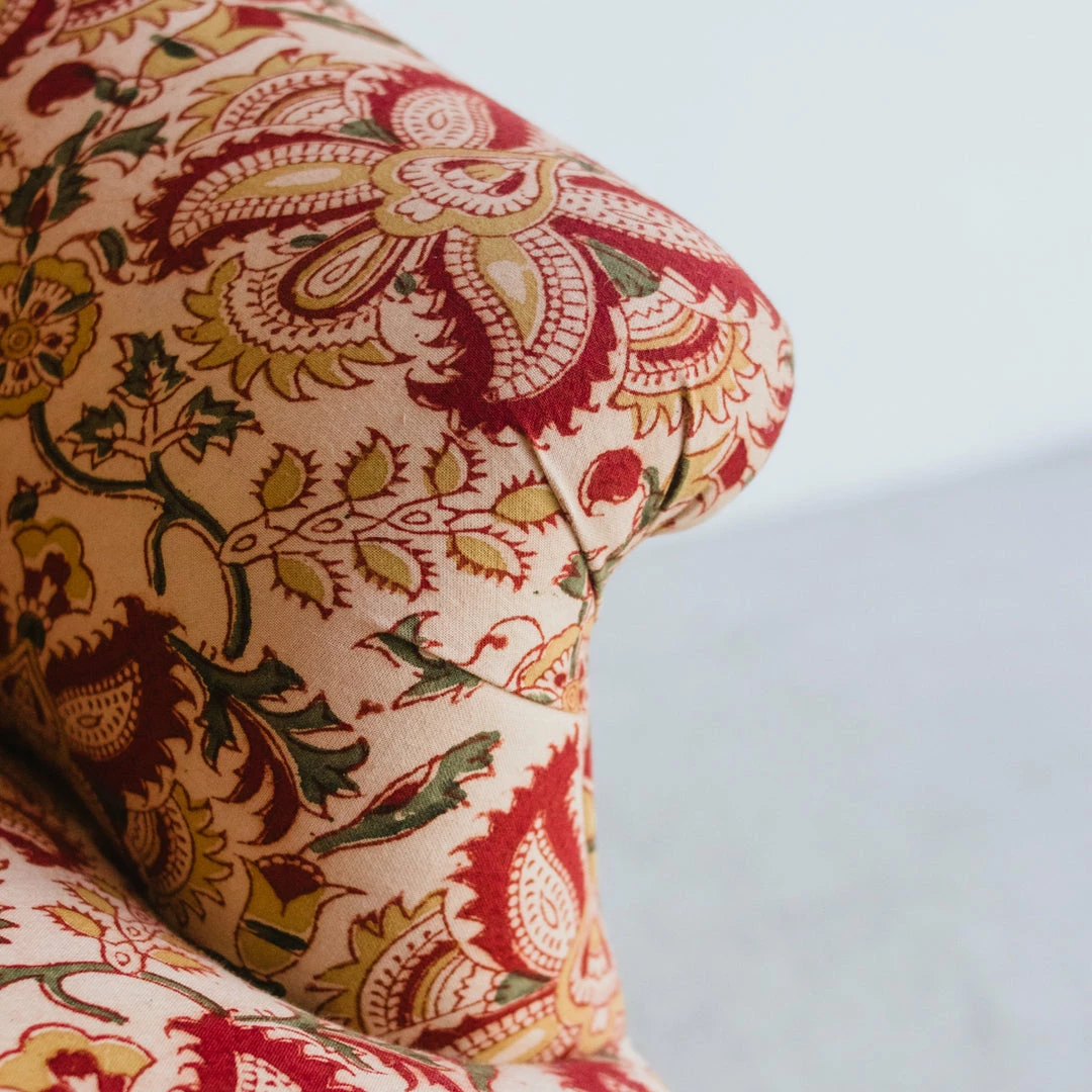 This chair has all the design elements of the classic French crapaud with its wide arched back and tight rolled arms. It’s a lovely, unique piece to add some soul to a room.
