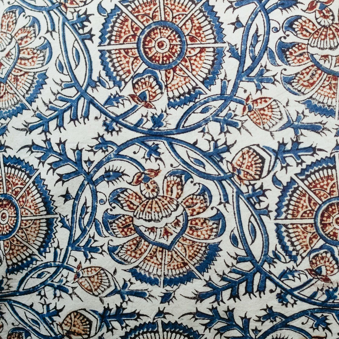 - Fabric is hand printed on organic cotton in India.