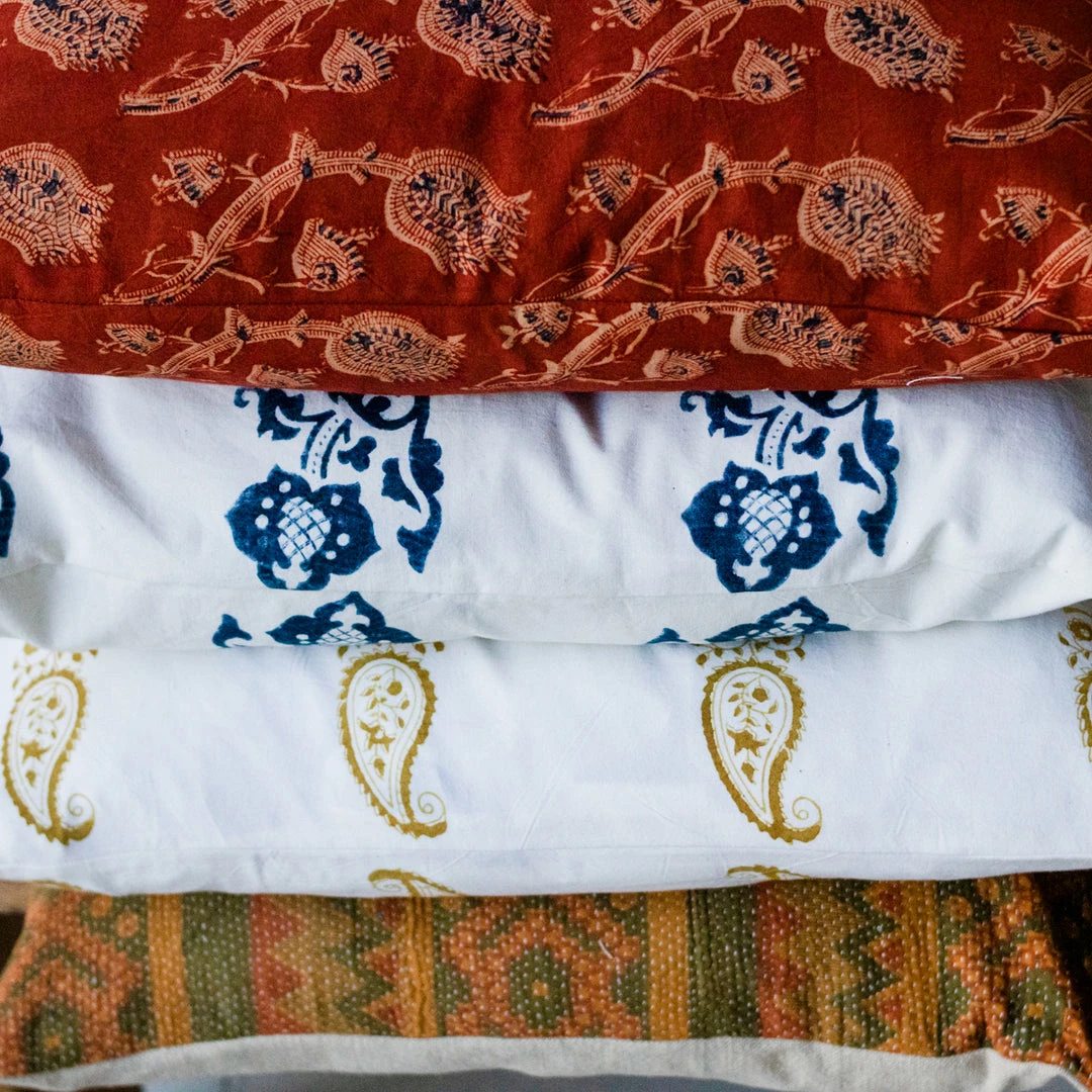 It’s no secret: we love simple patterned pillow covers, especially when paired with a hand applied technique.