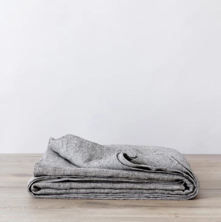 Pure heavyweight linen in textured chambray weave. This piece can be layered or used alone on warmer nights.
