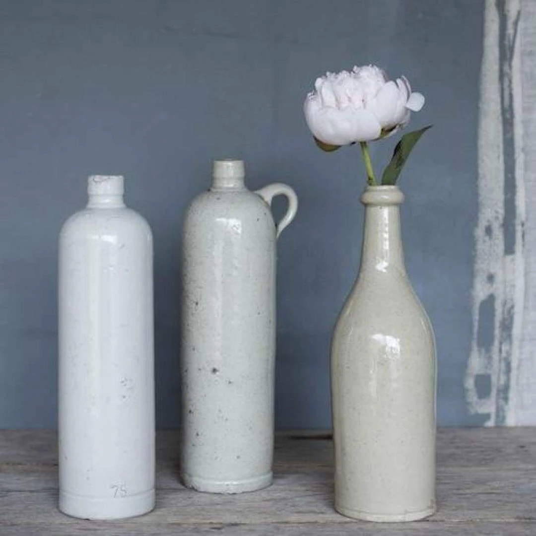 We found these vintage beer bottles in a farmhouse outside Chartres, France. Now they make beautiful vases or decorative objects. The come in beautiful shades of neutral from off white to grey.