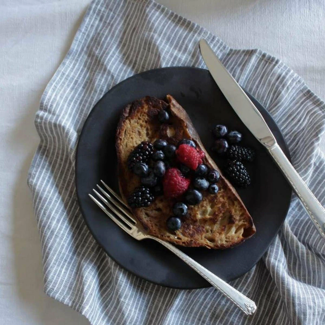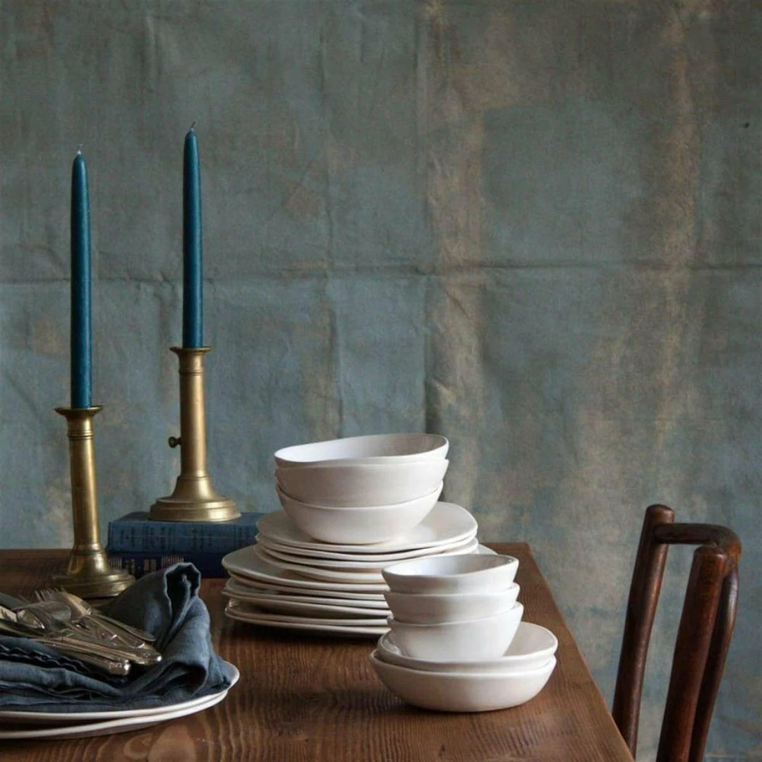 What a luxury! We love this dinnerware because each piece is hand made by artist Alex Marshall in her Corning, California studio. Itโs an investment youโll be happy you made when you use it every day.