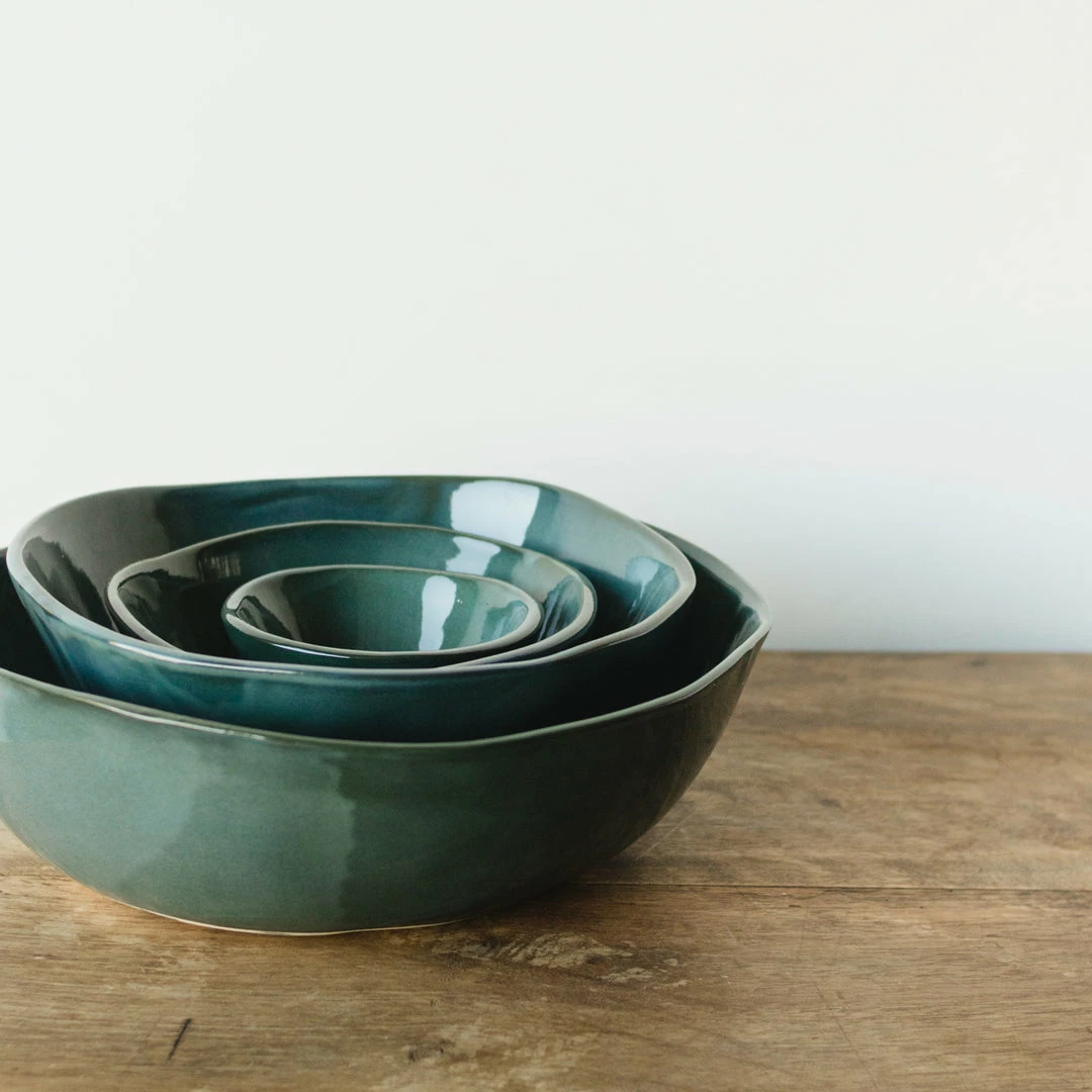 These bowls are a gorgeous staple to have in your pantry. ย They’re functional, pretty, and perfectly imperfect because each one is hand-made by artist Alex Marshall in her Corning, California studio. ย And each one is signed like a little work of art. ย