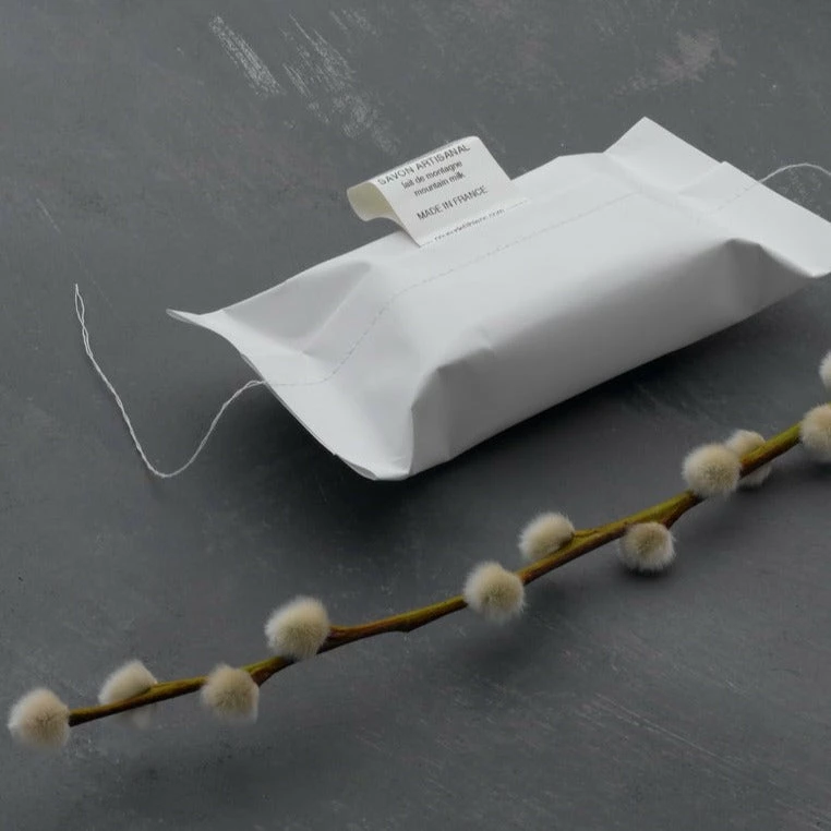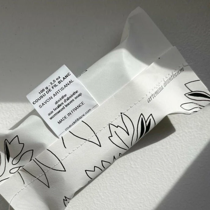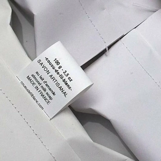 - Wrapped in paper with machine sewn seam and Cousu de Fil Blanc label.