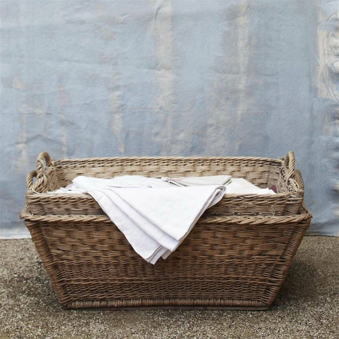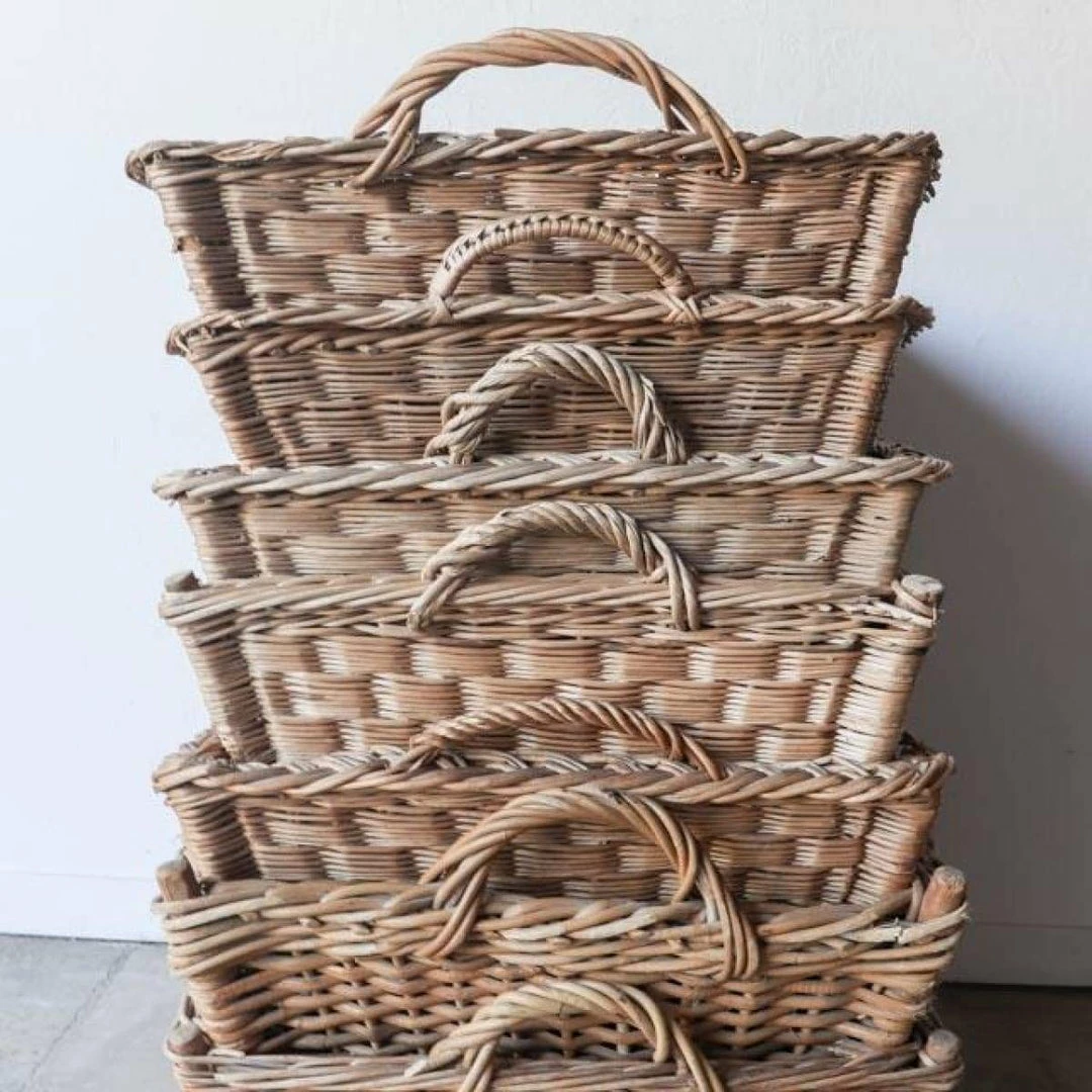 We love these vintage French laundry baskets for storage, for transporting things, or even for laundry. ย They have a patina that comes with age and use, and that perfect French laundry basket shape.ย ย