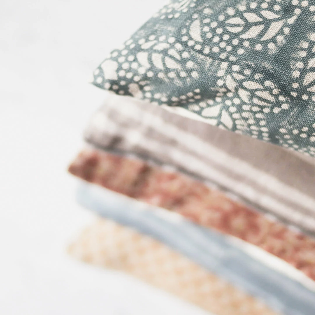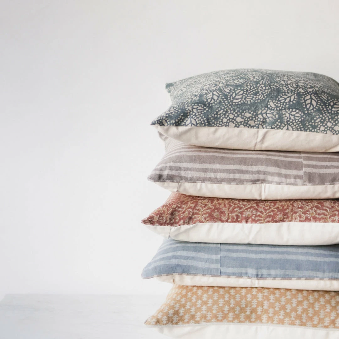 Beautifully hand block-printed on linen base cloth. Featuring hand printed stripe pattern printed with exquisite detailing.