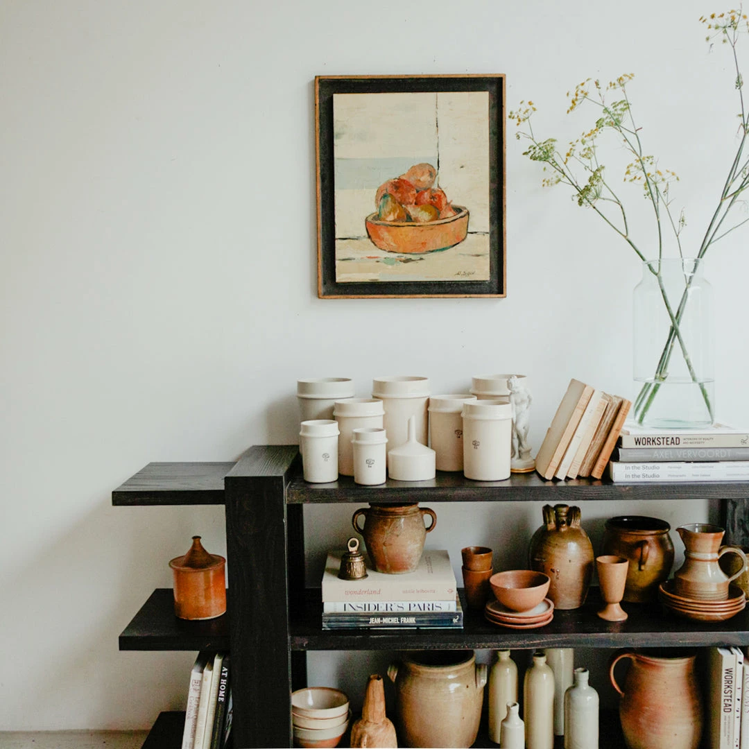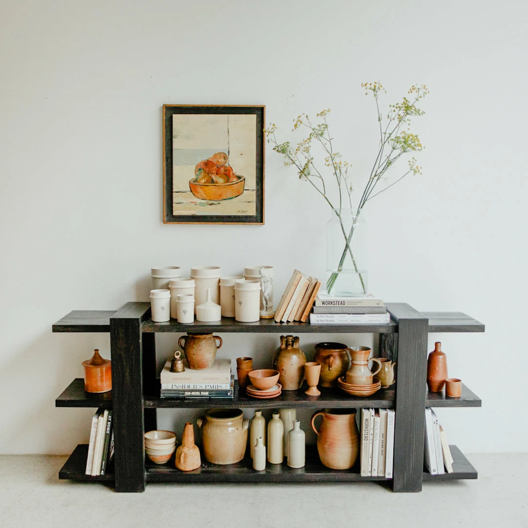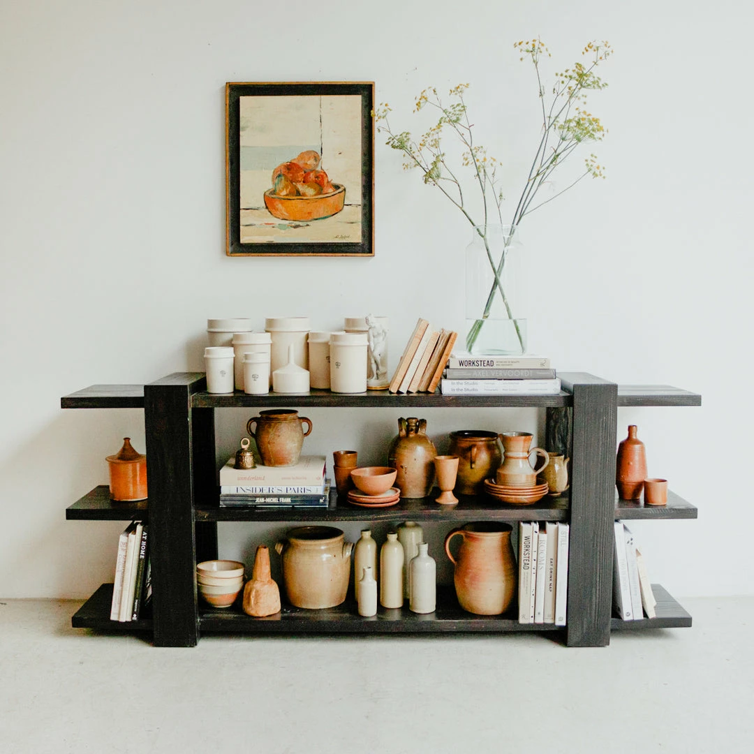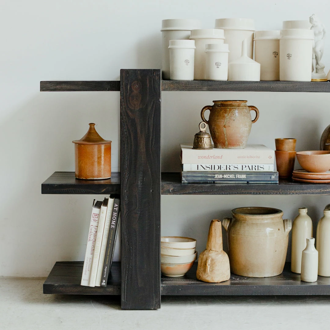 This piece is a more modern version of ย a vintage etagere we found in a workshop in Lyon.ย We love the structural reference to barn ladders.ย Each piece is newly made from vintage fir in Southern California.ย ย