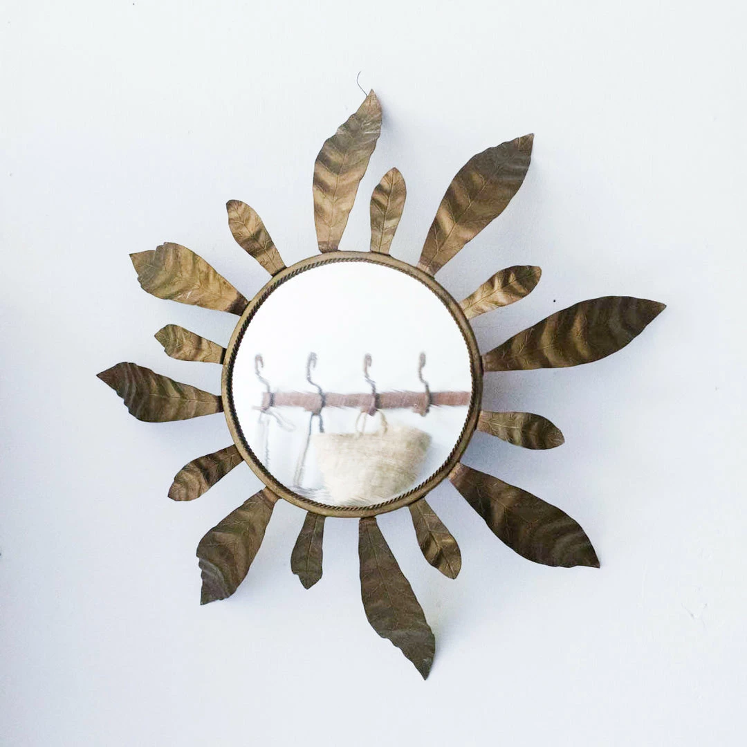 This mirror is a pretty little work of art.ย It mimics the classic French bamboo sunburst mirror, but with a bit of extra glamour.ย