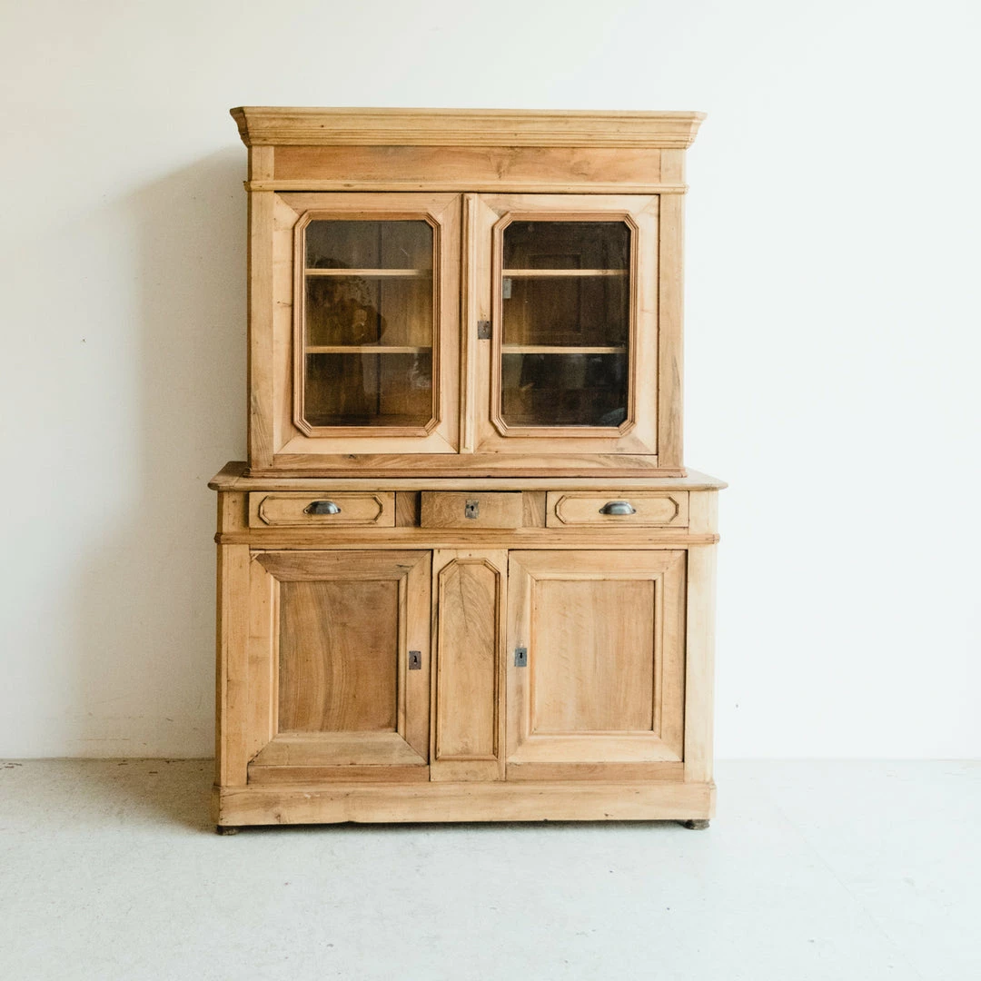 This china cabinet is beautifully constructed to showcase the flowing grain of the wood.ย And we love the clever design that allows for closed storage on the bottom, but showcases your treasures on the top.ย ย