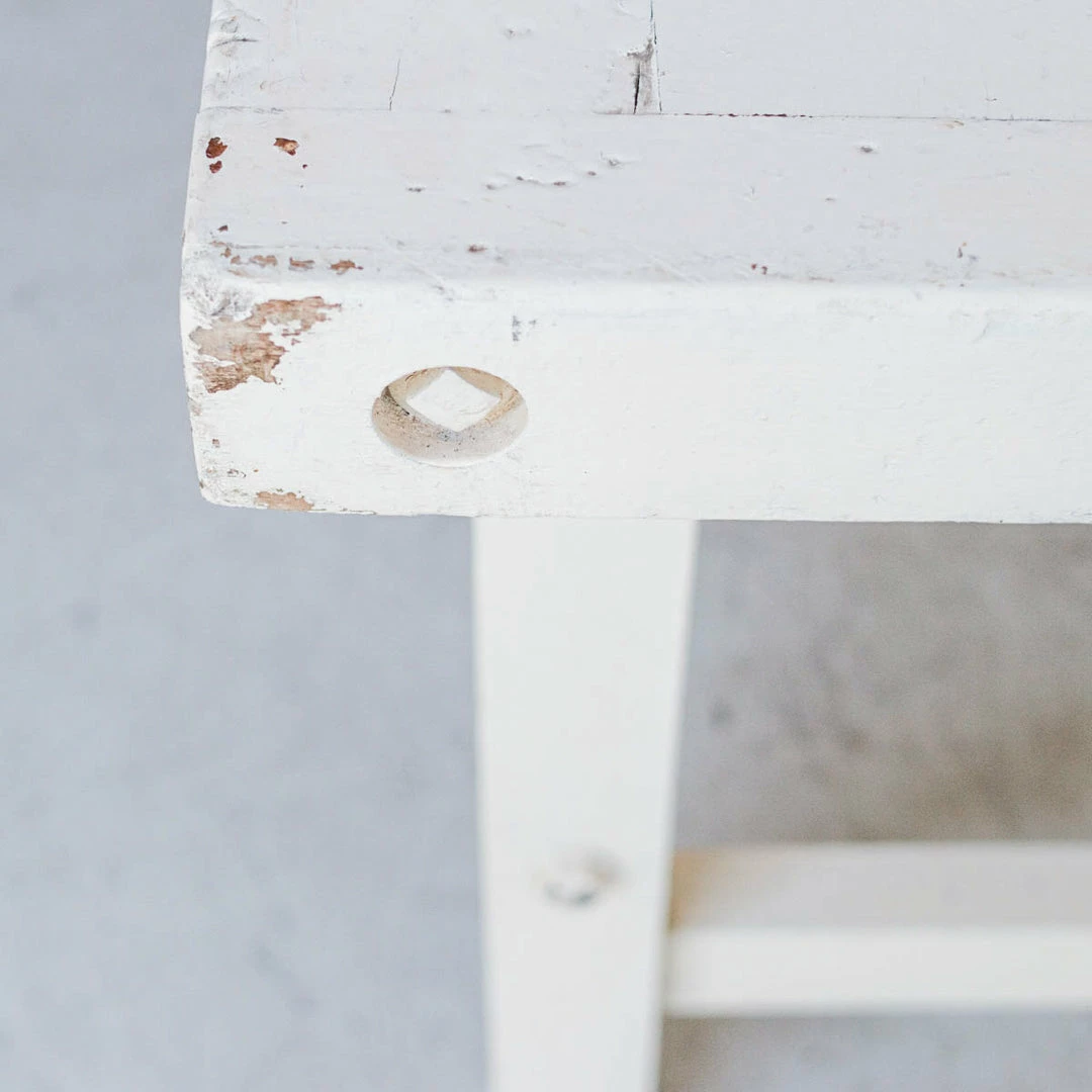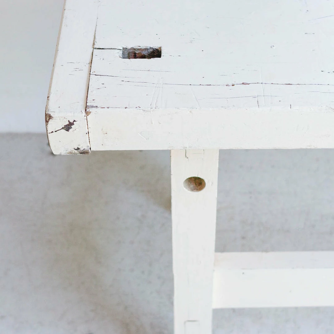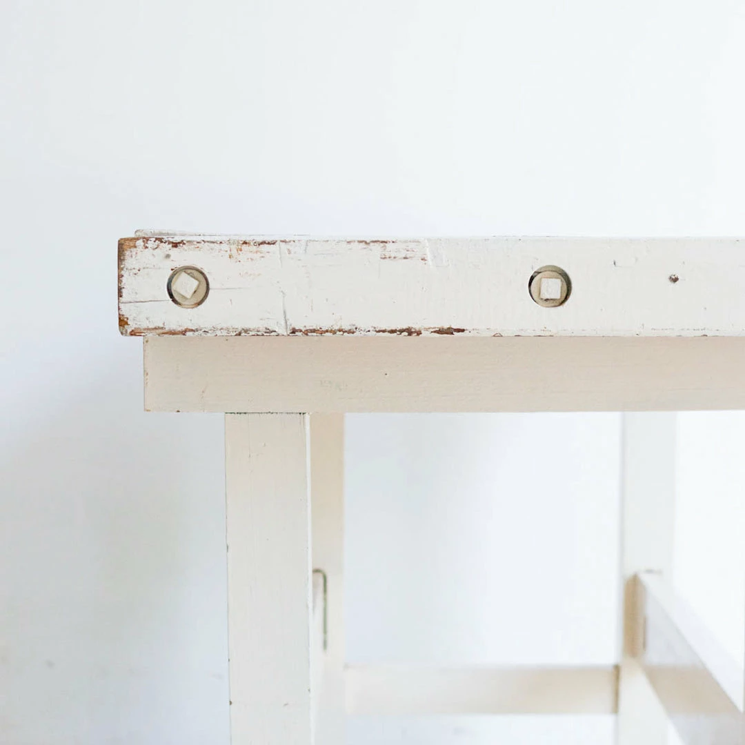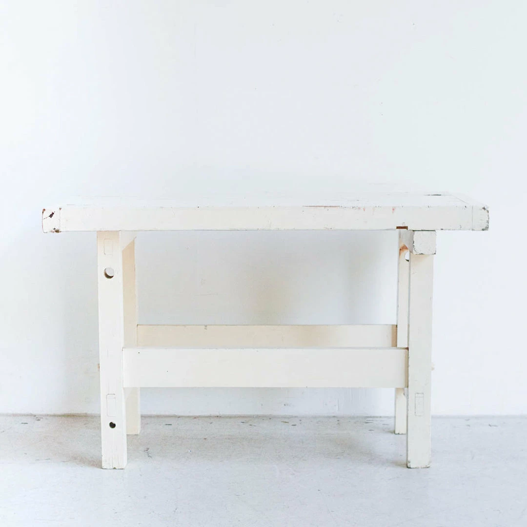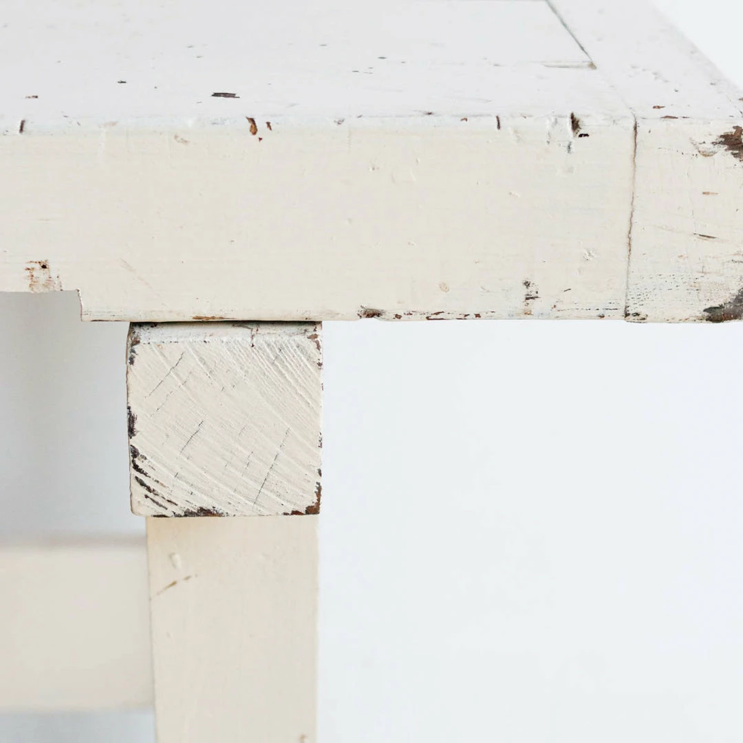 This rustic console was once a workbench in a French workshop.ย It’s perfectly aged and used with lovely rustic wood and chalky white paint worn away in all the right places.ย ย