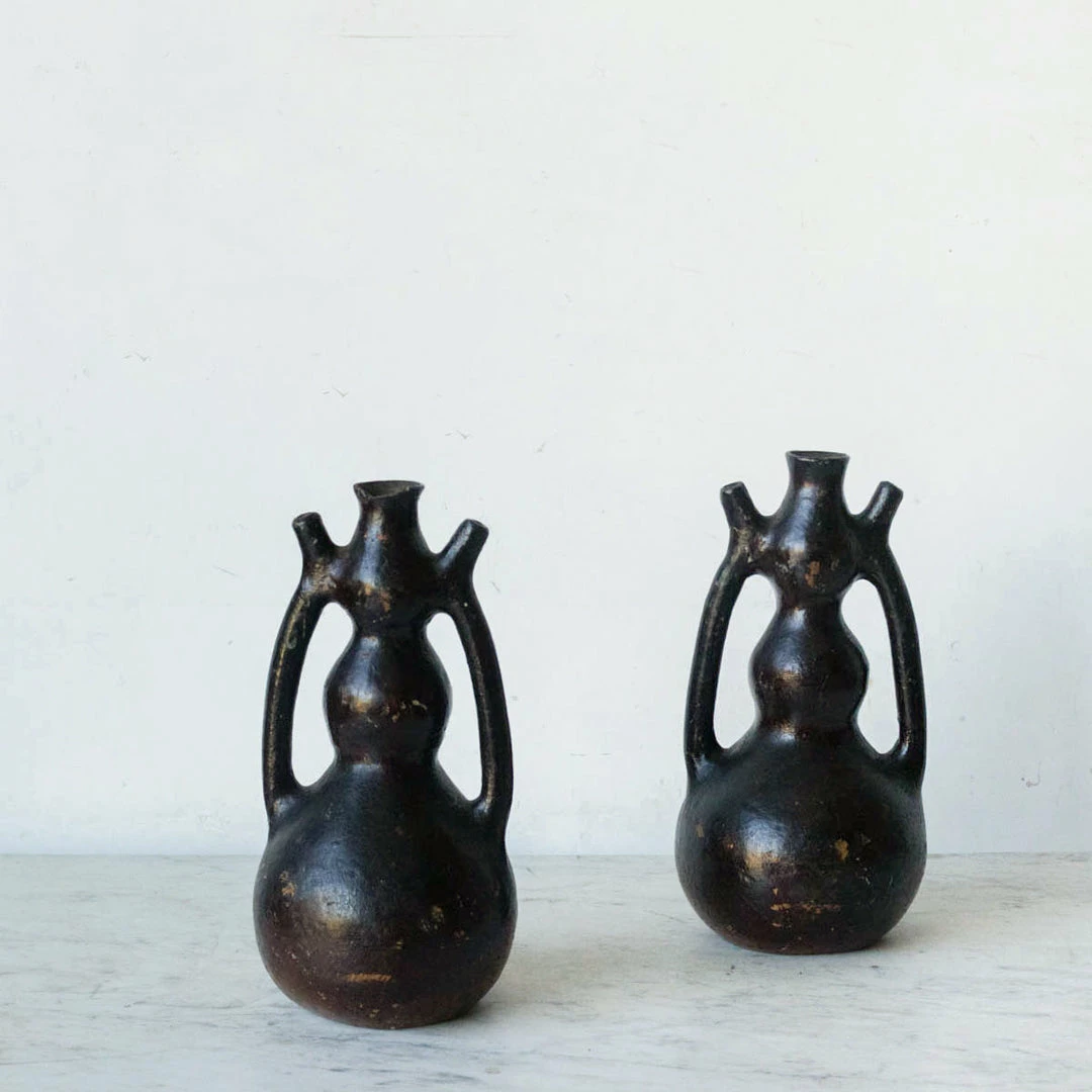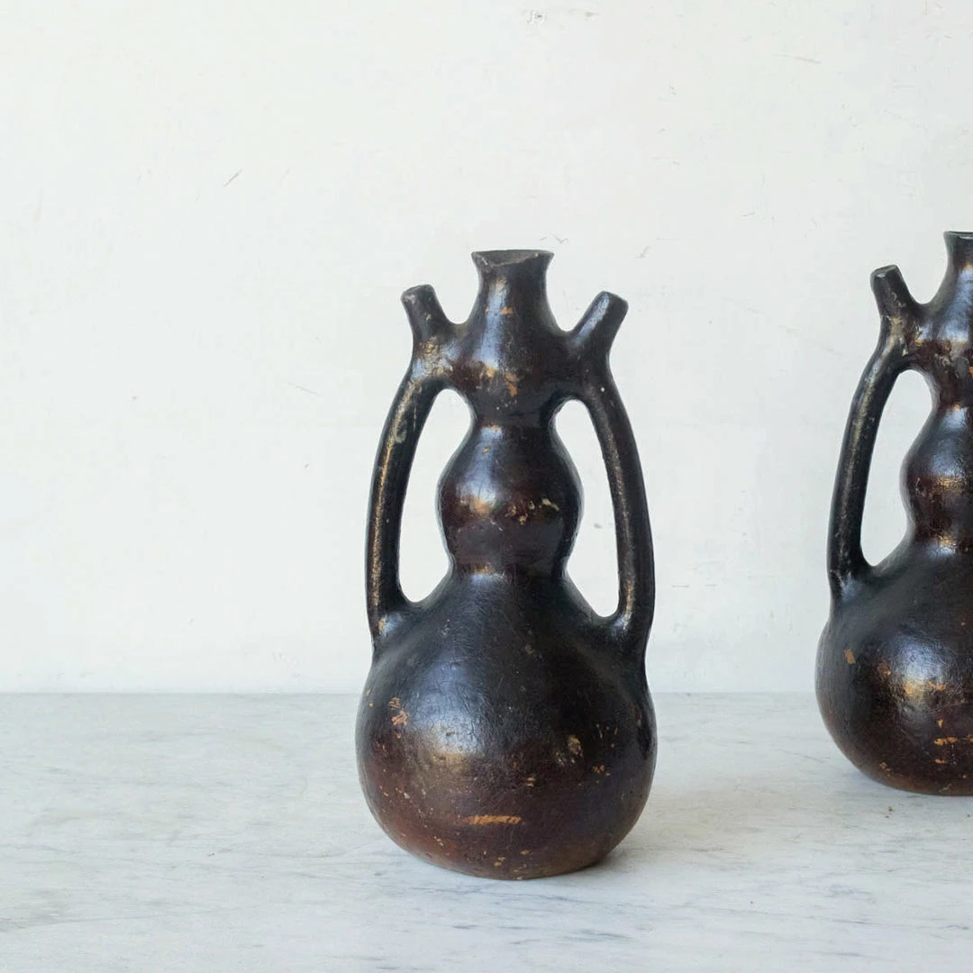 We found this pretty pair of hand made vases in a flea market in Chartres. We love the voluptuous shades and the deep brown glaze. They’re beautifully unique works of art.