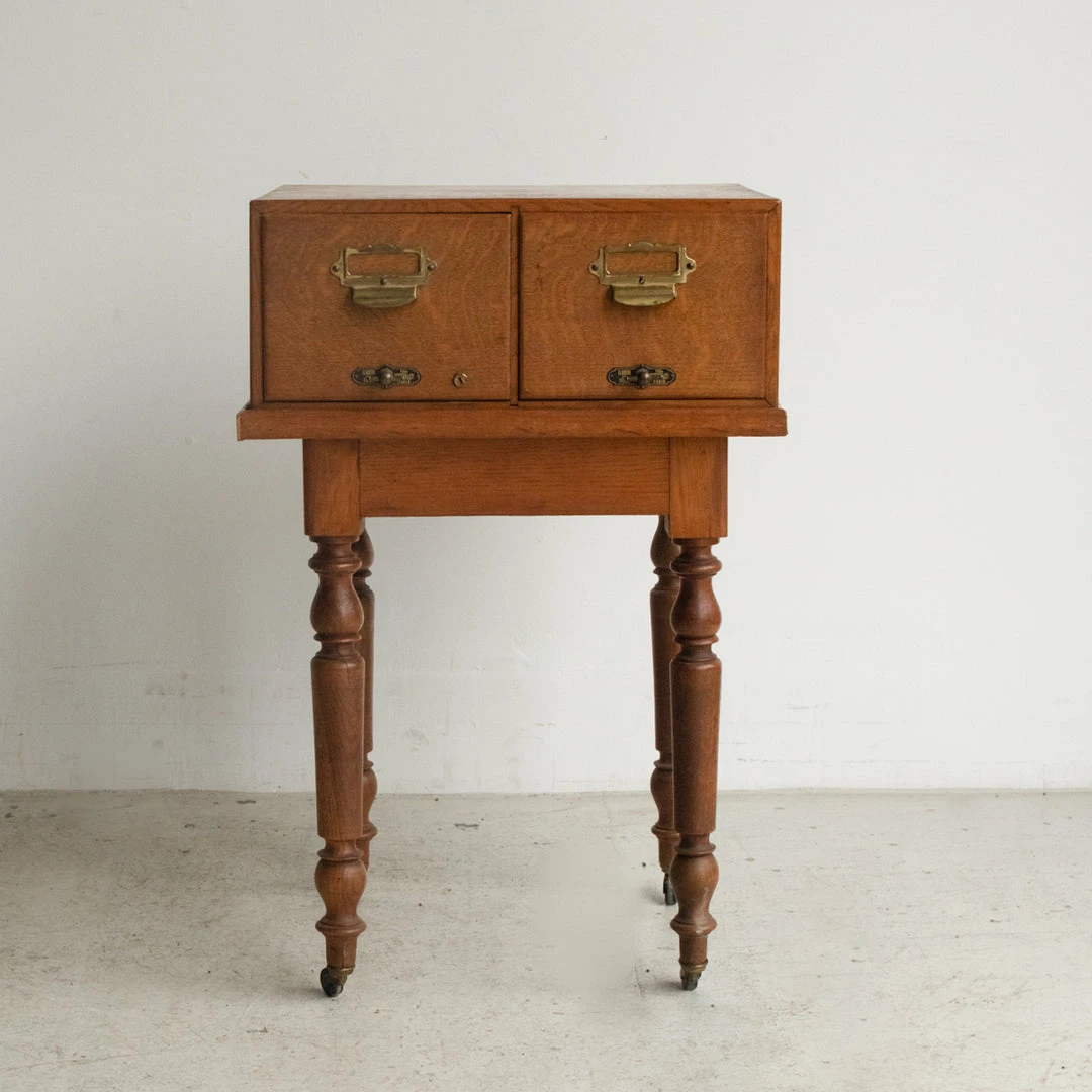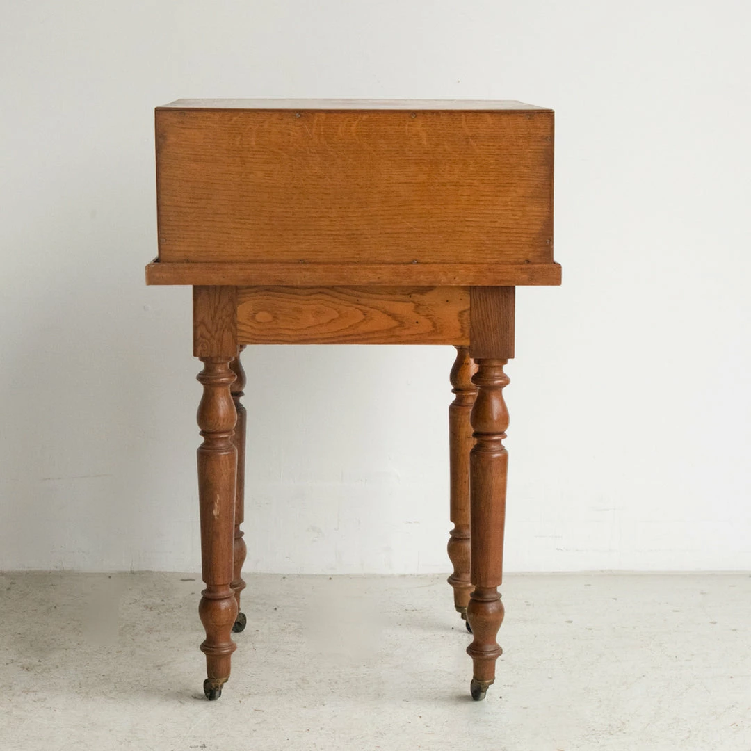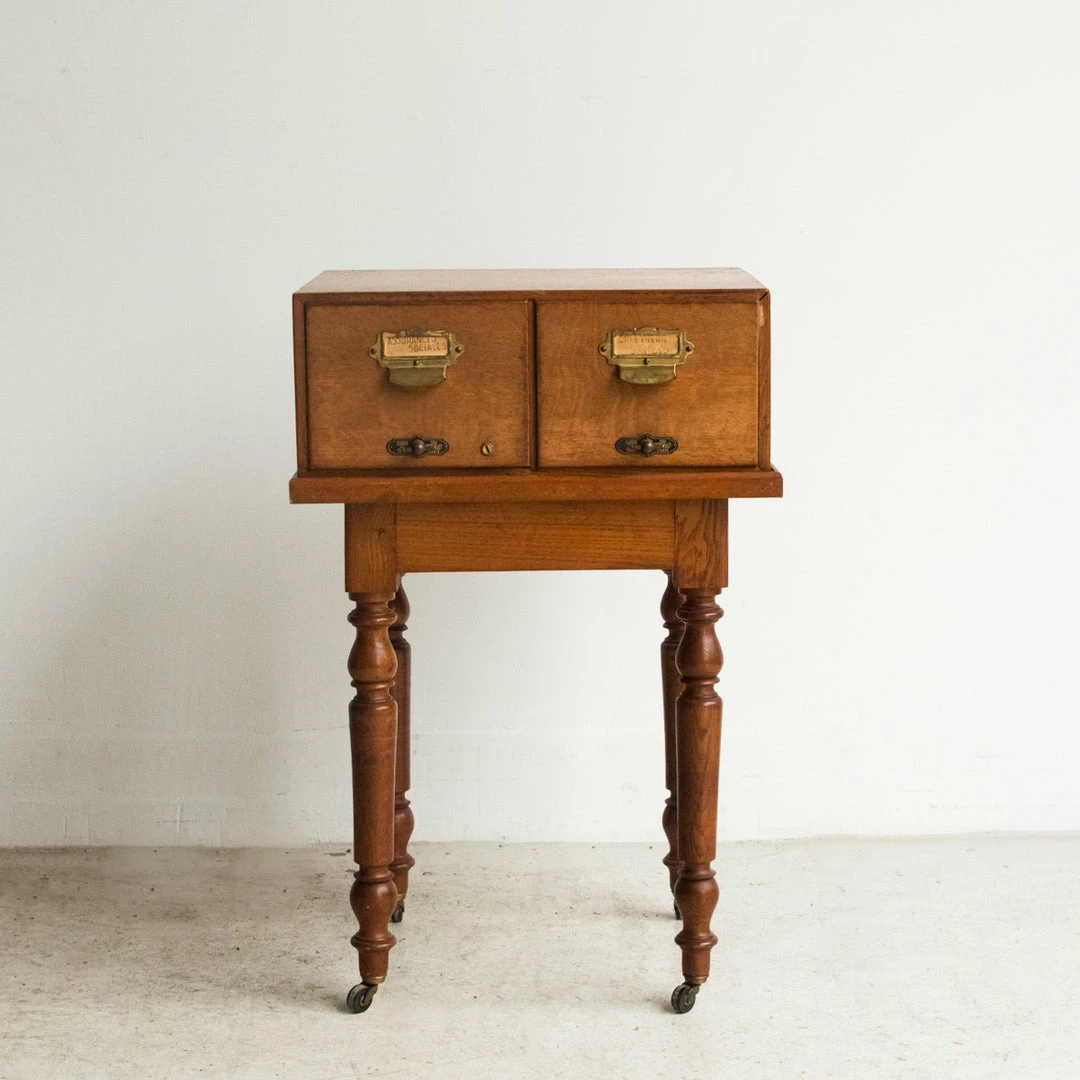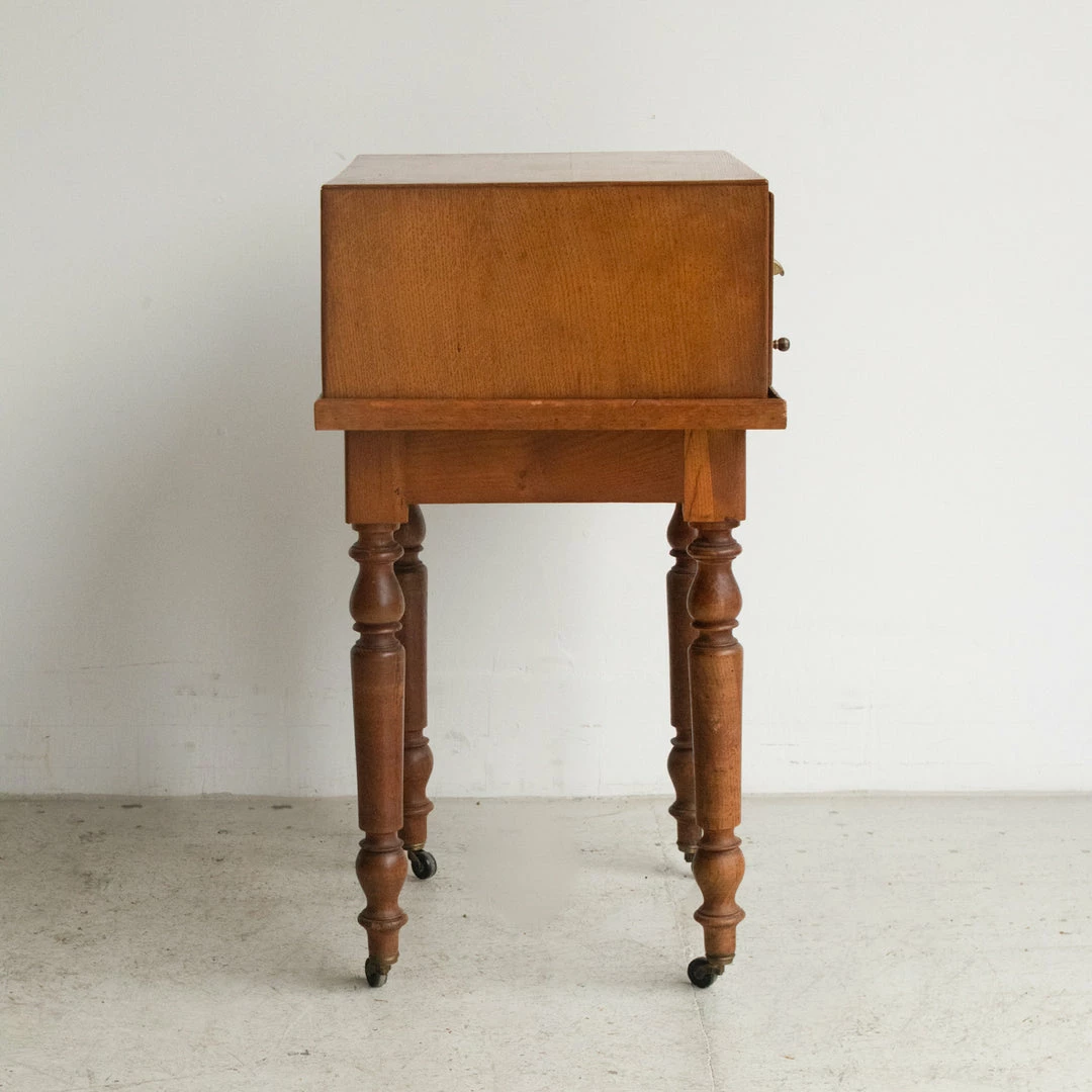 - Each table is constructed in two pieces: top with drawers, base with casters.