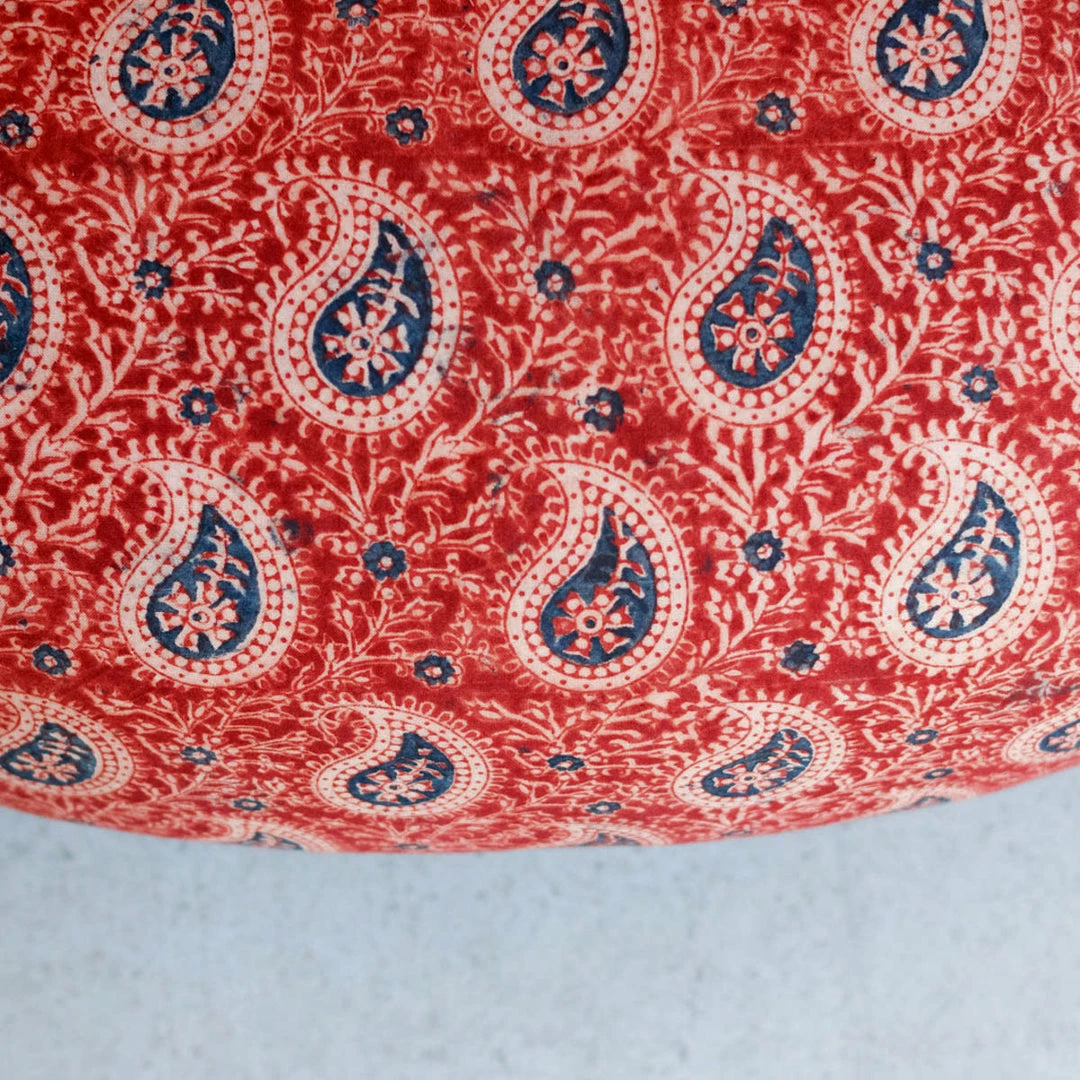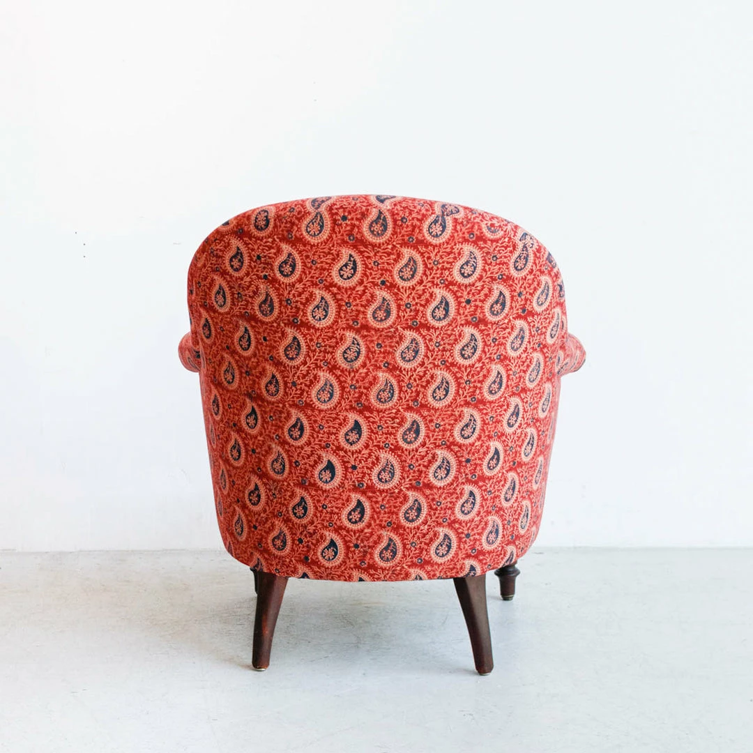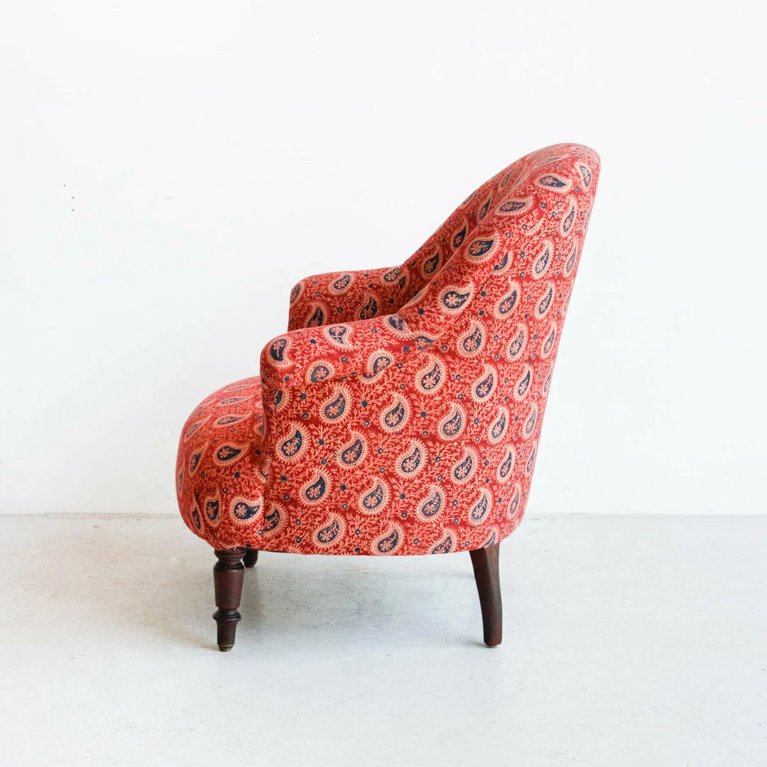 We found this cute set of twins in a flea market in Chartres.ย They’ve been carefully restored and re-upholstered in organic cotton, hand printed block print fabric.ย We love the intricate pattern of the block print.ย ย