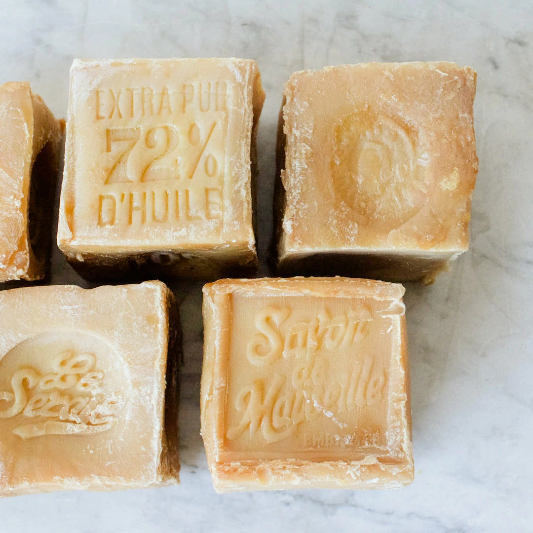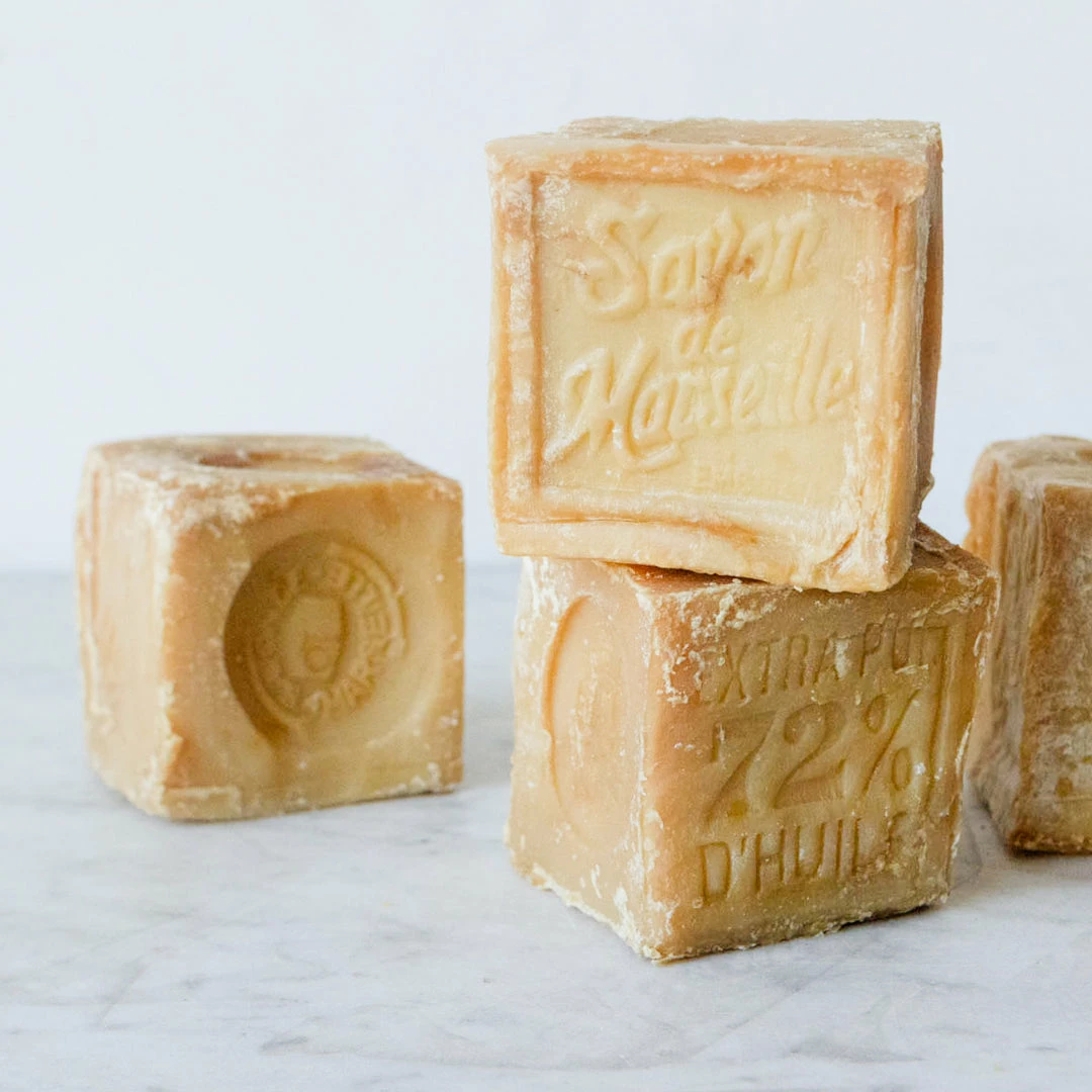 These bars are made in the Savon de Marseille factory in the south of France. Each one is made from olive oil and will look beautiful at your sink. Your hands will be so soft. We speak from experience — we use it in the Elsie Green studio.