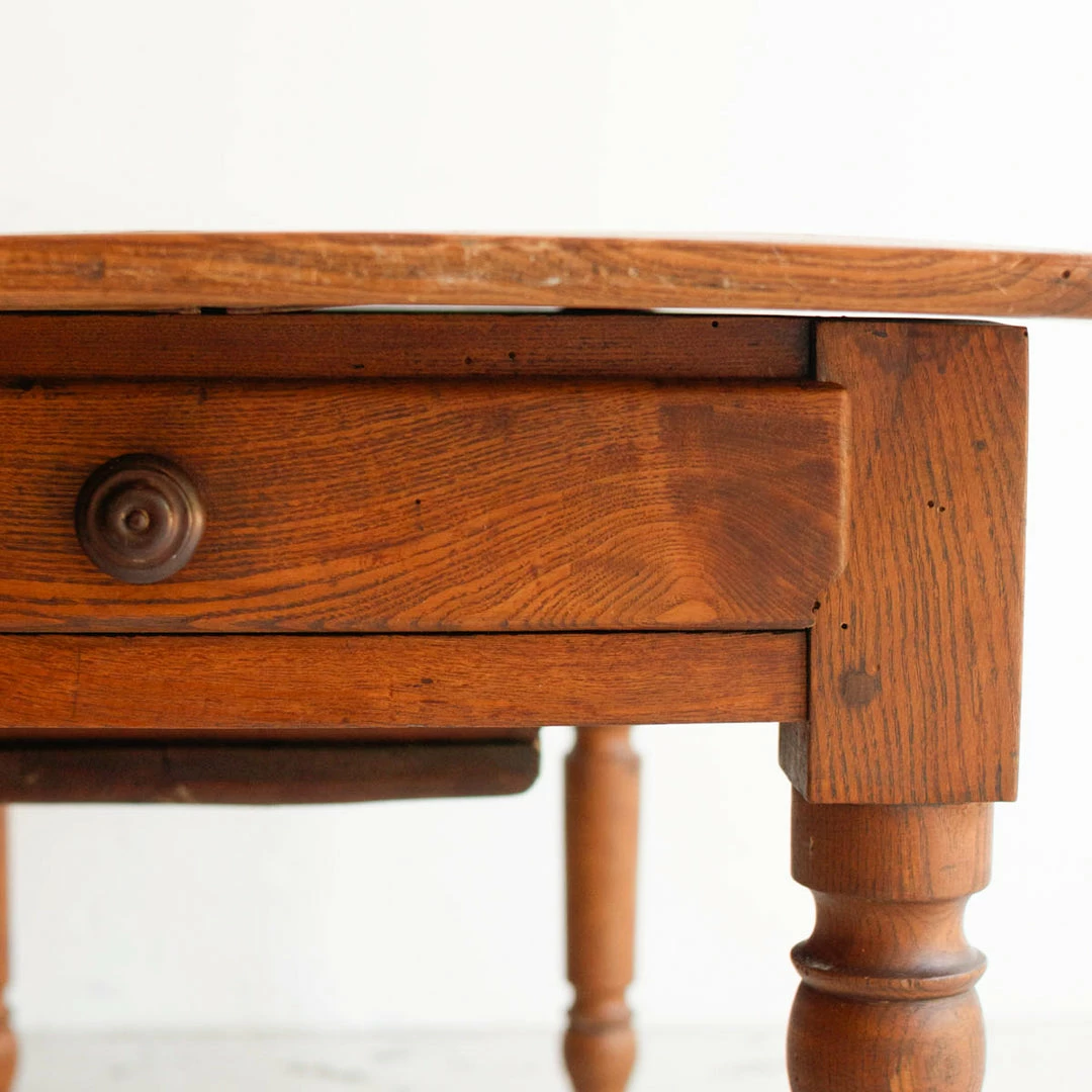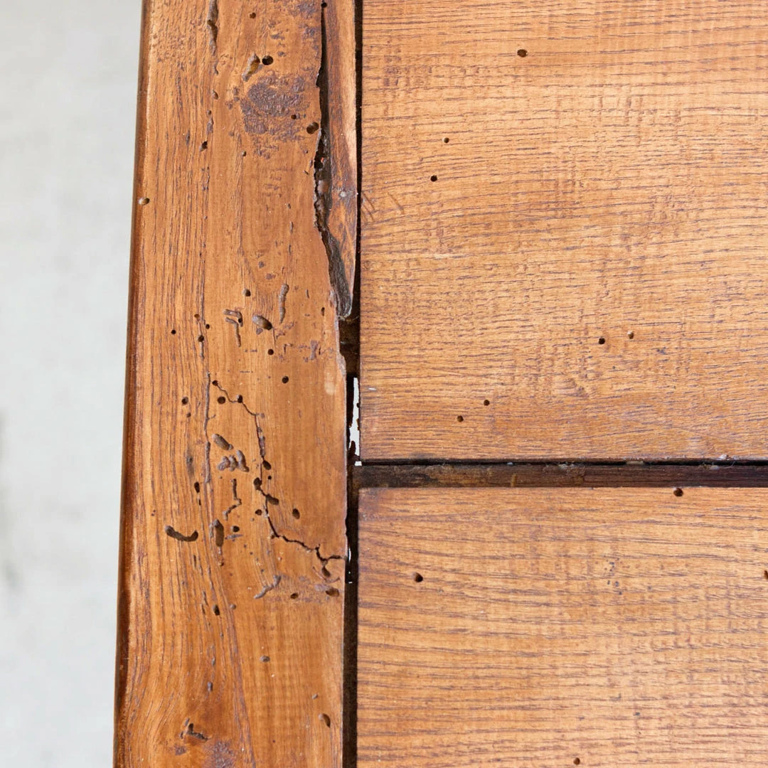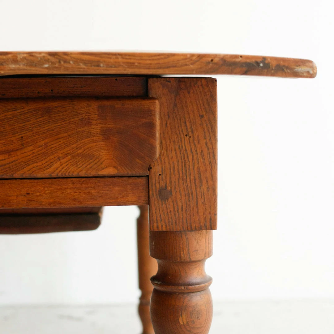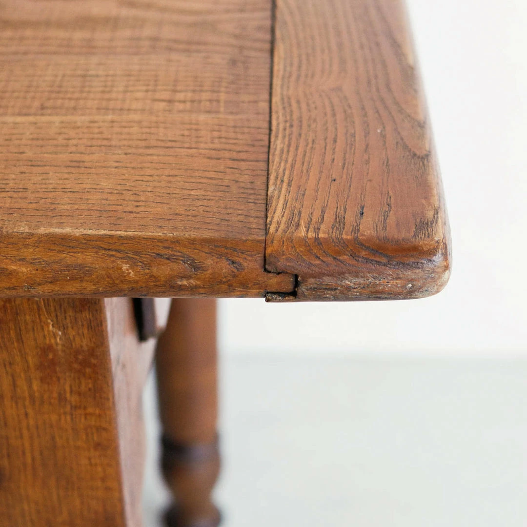 This table was once the centerpiece of a French kitchen.ย The trough held rising dough and the drawer held kitchen tools while the removable top served as a work surface.ย ย We love the well-worn waxed finish, polished smooth with time and use.ย ย