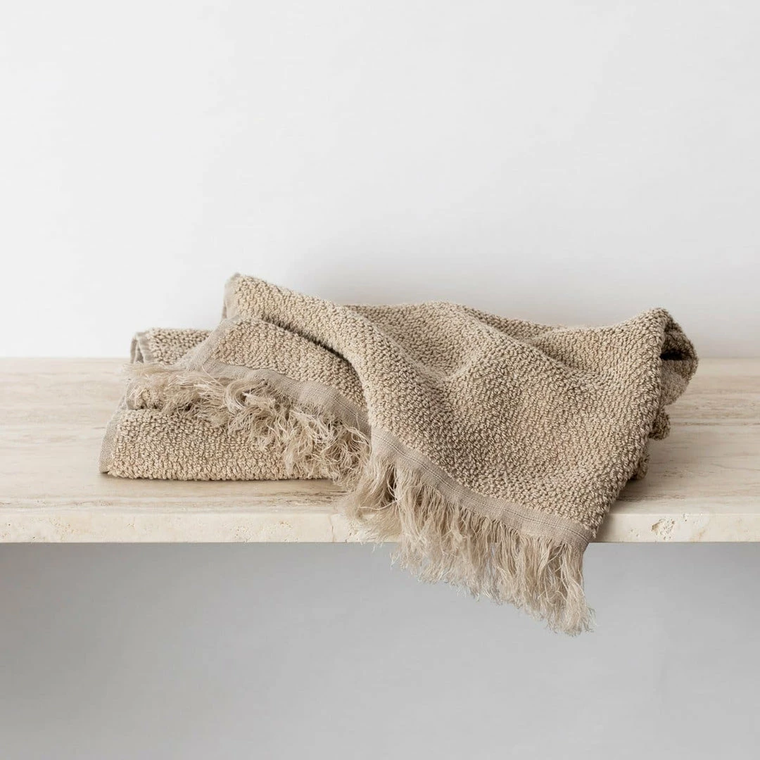 Balancing softness, style and absorbency, and complete with considered details including a delicate fringe and hanging loop.