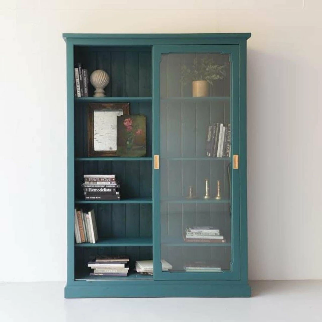 - Available in black, waxed pine, weathered grey, white, mahogany, espresso, and beau green (shown).
