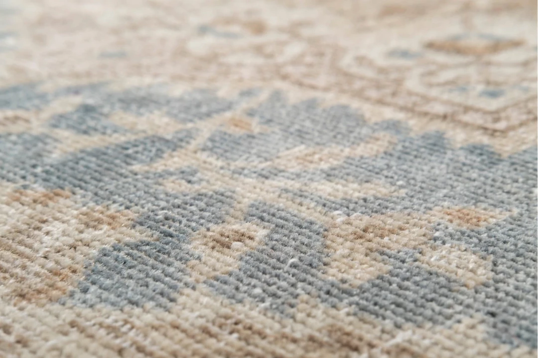 - This rug displays slight rippling at the borders due to its handwoven nature.