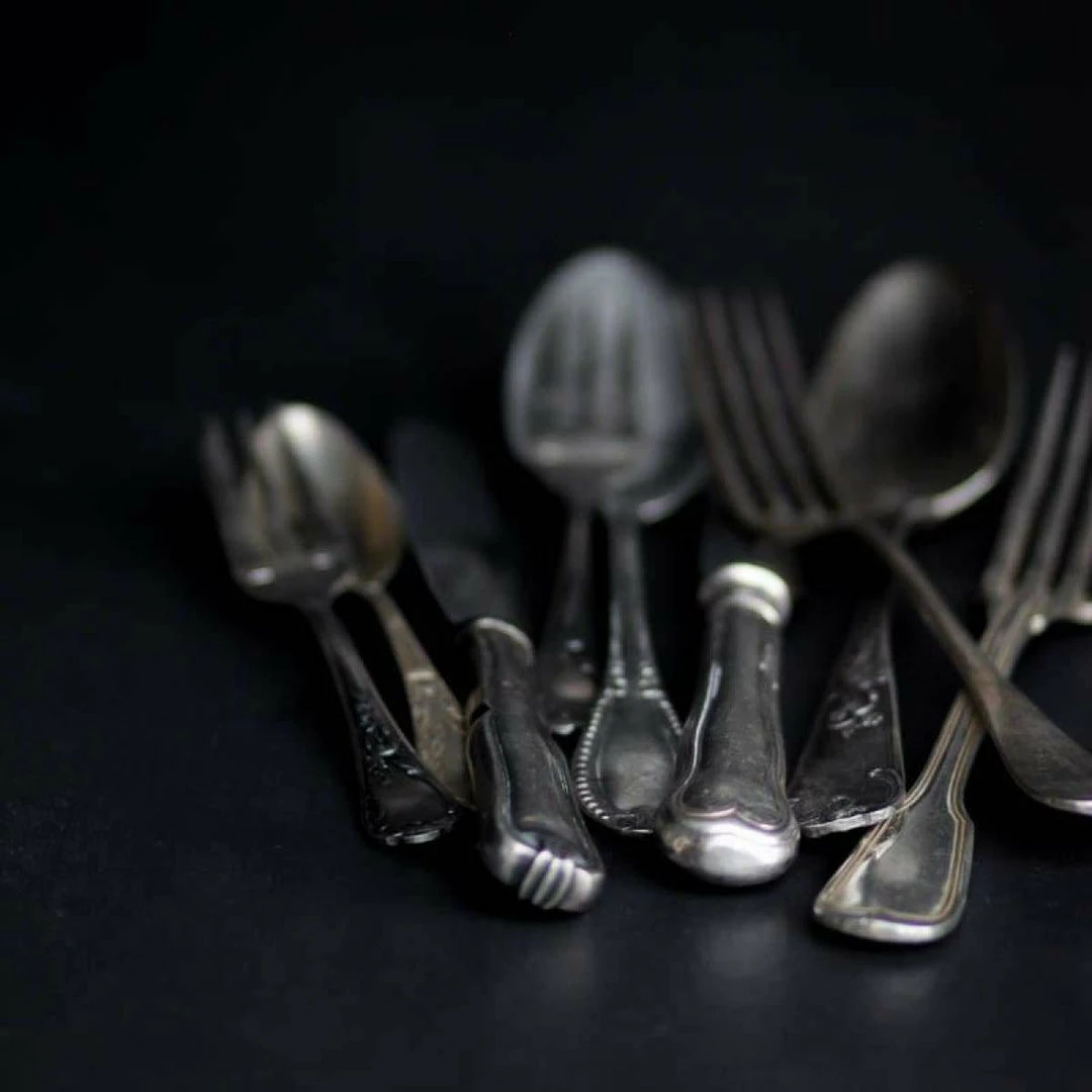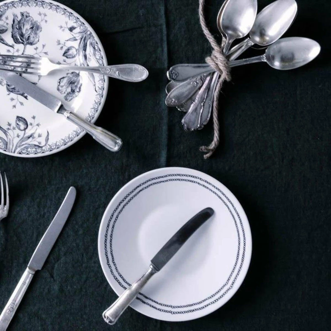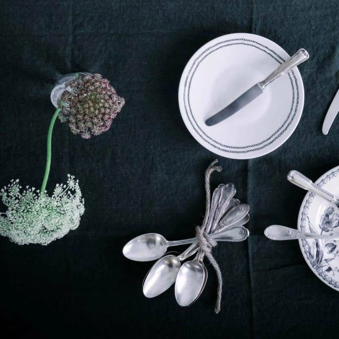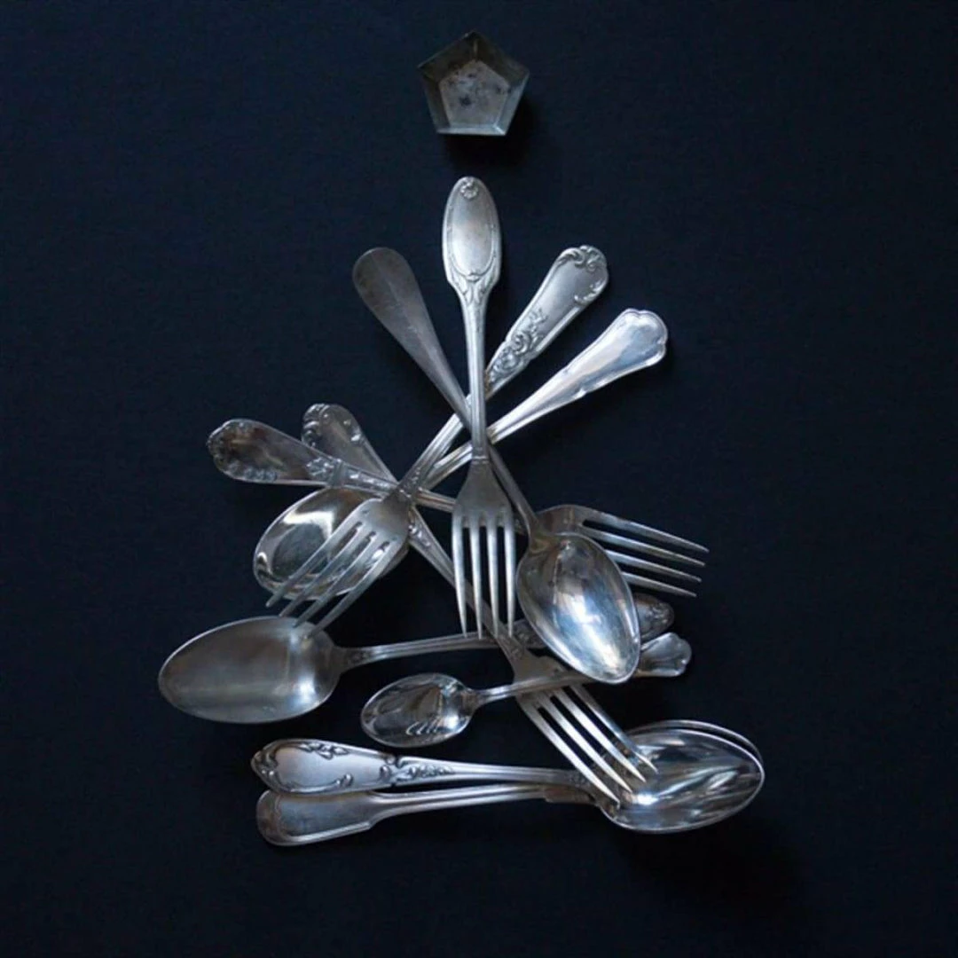 We love keeping our vintage silver in a big glass jar and bringing it out for parties. This set is made up entirely of French pieces, which means heavier pieces, larger European sizing, and forks and spoons decorated on both sides. They’re simply beautiful.ย ย