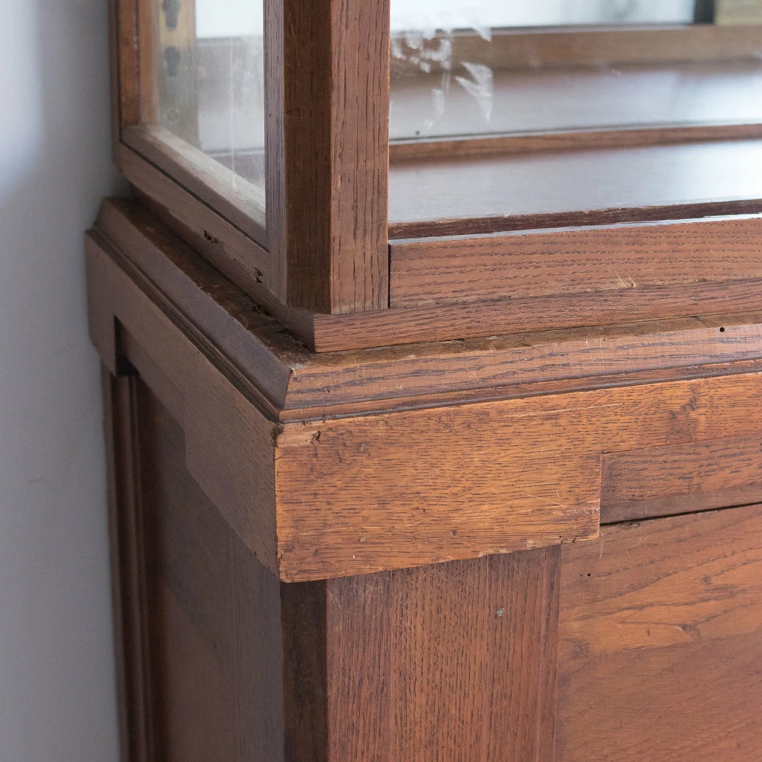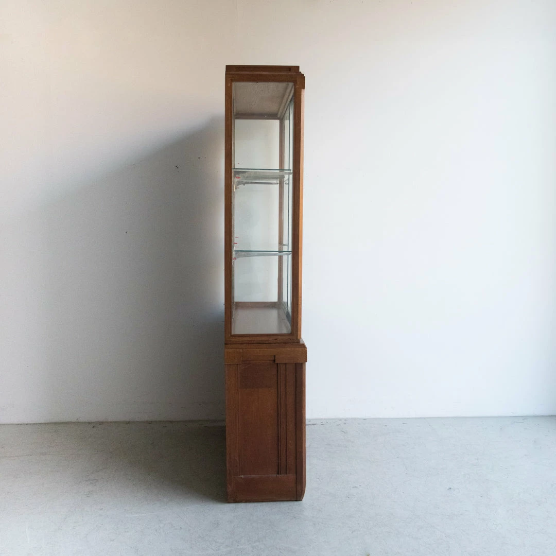 This incredible cabinet was made by Siegel and Stockman, famed art deco showcase and bust form maker in Paris. It was used in the 1920s in the Paris department store Printemps. Its mirrored back, glass shelves and brass fittings are sparkling details, and a rare find in the vintage markets.