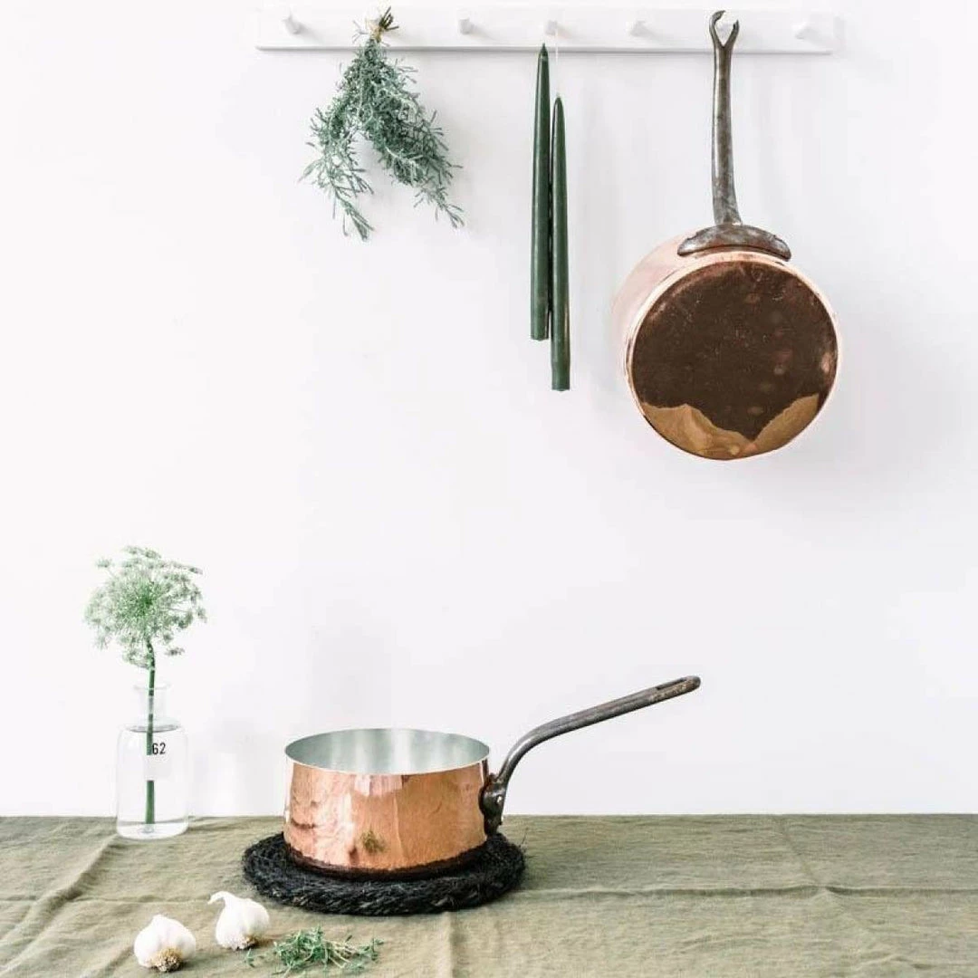 You’ll love the even heat conduction of copper. These vintage pieces have been polished and re-tinned.