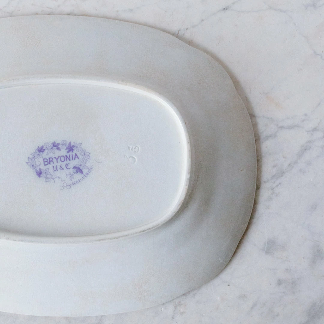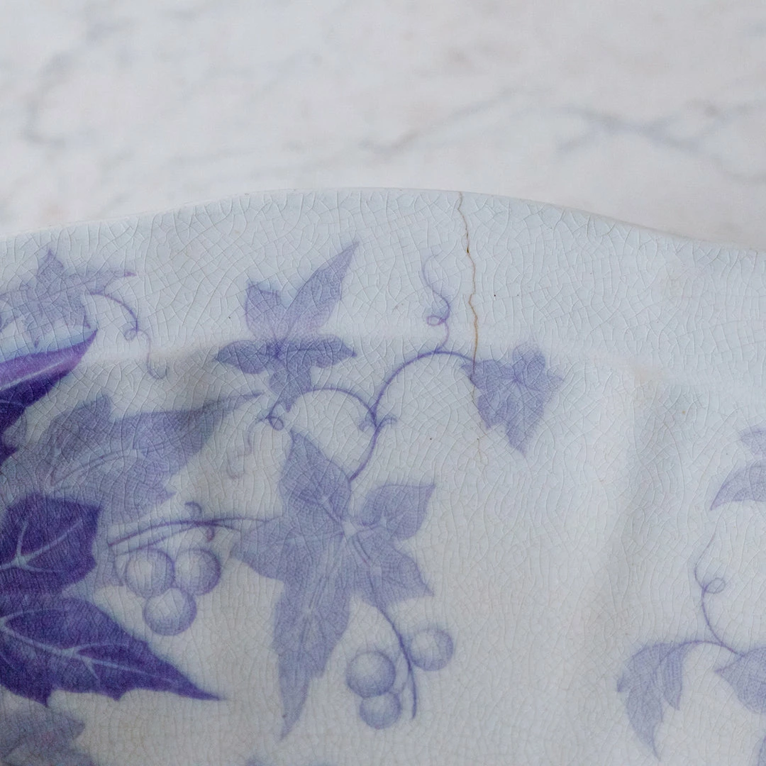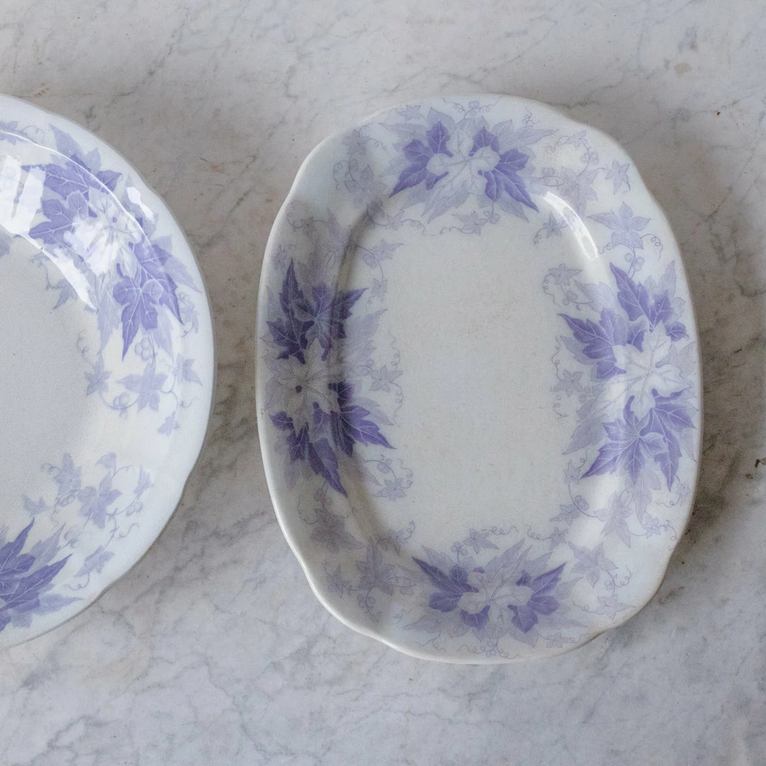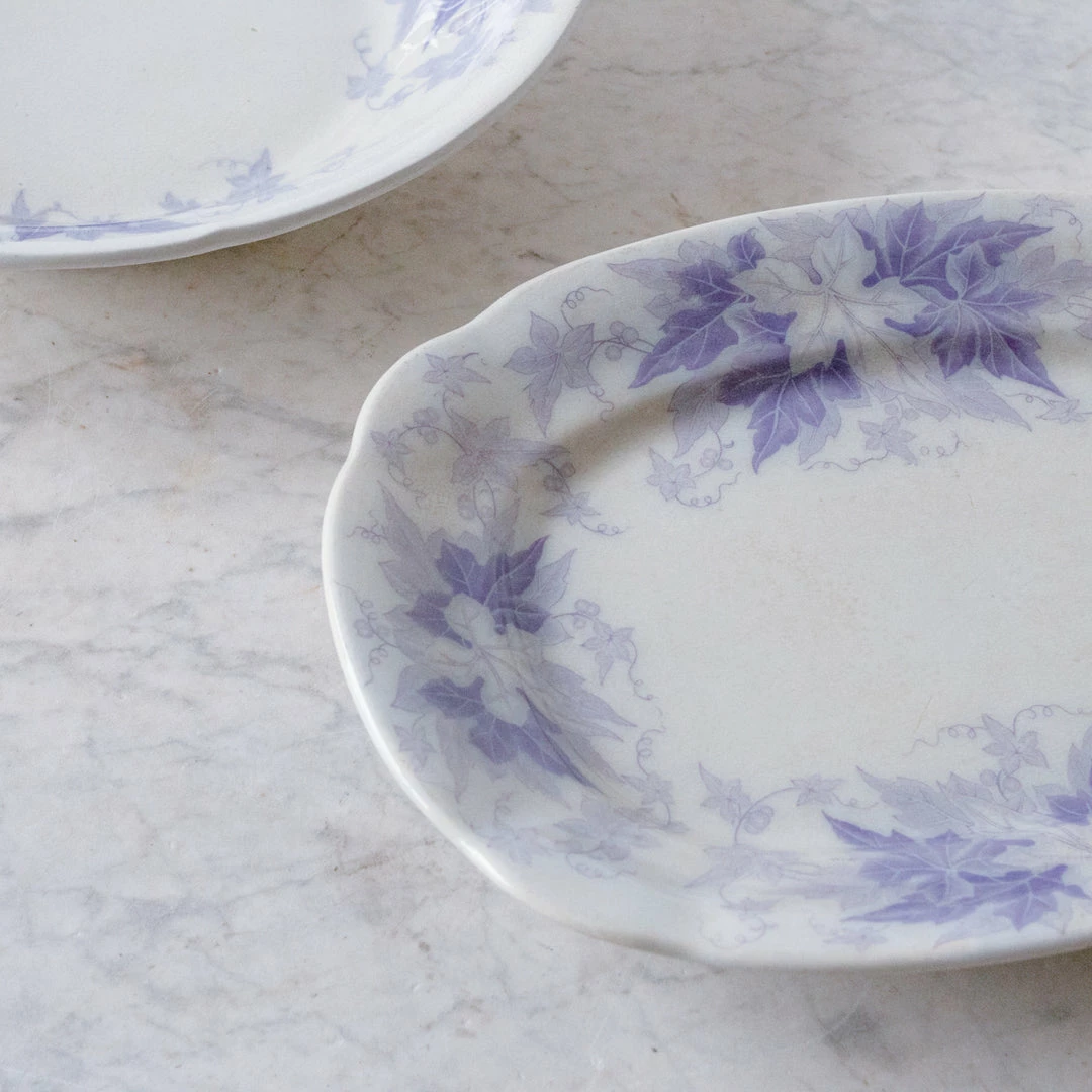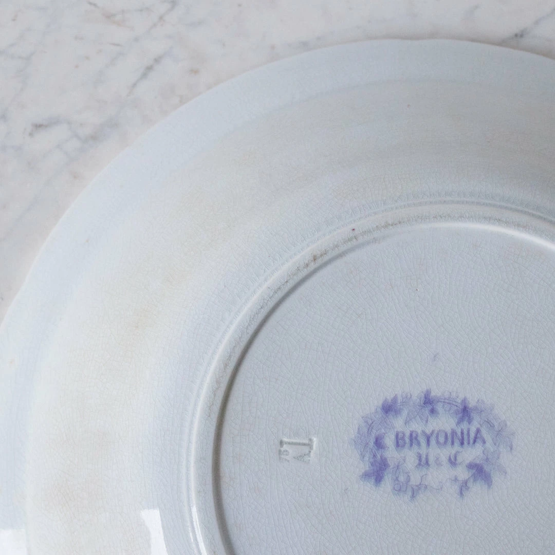 A transferware plate is a very nice thing to have in bulk in your china closet. This pretty pairย has a pattern of flowers that we think is lovely.ย ย Decorated with the classicย transferware technique that is typical in France.