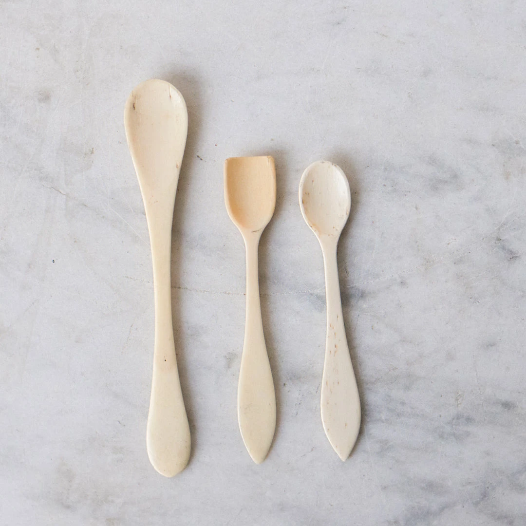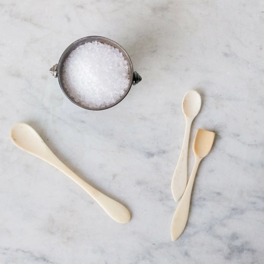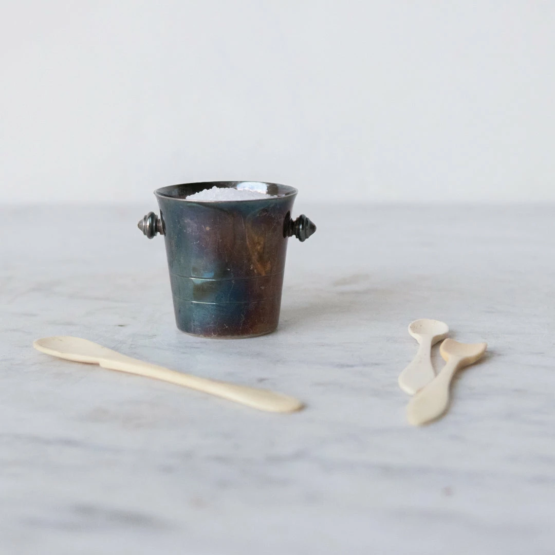 We love tiny spoons. They’re so useful for salt, jam, sugar, whatever you choose. Each spoon in this petite trio is unique, and the vessel made to resemble a petite champagne bucket is so charming.
