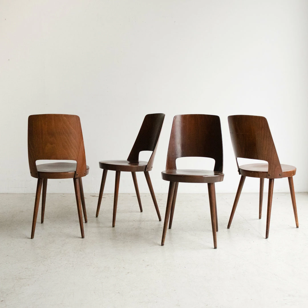 This is the most classic style of bentwood chair from Baumann France. We love the simple, circular seat and the curved bentwood back. And those sexy tapered legs. Oh la la.