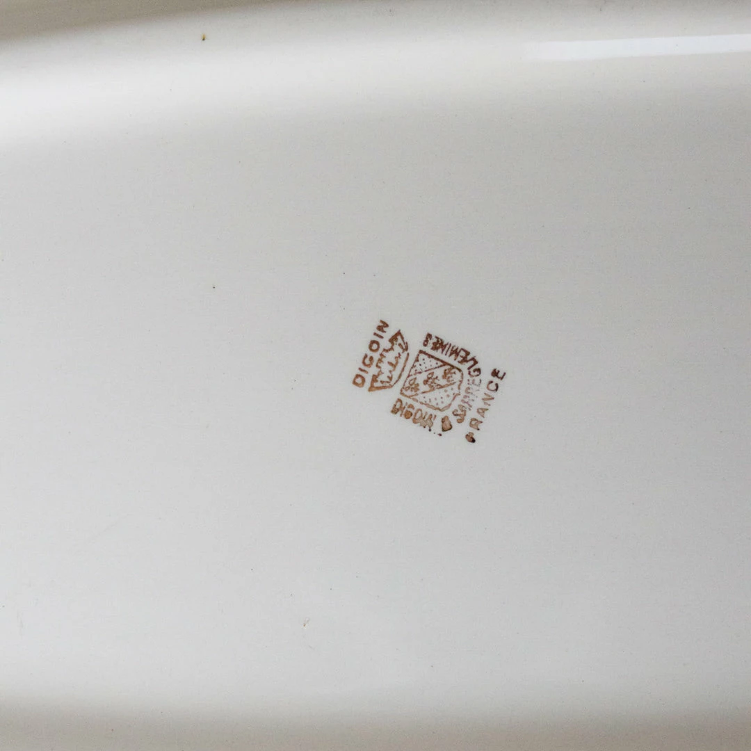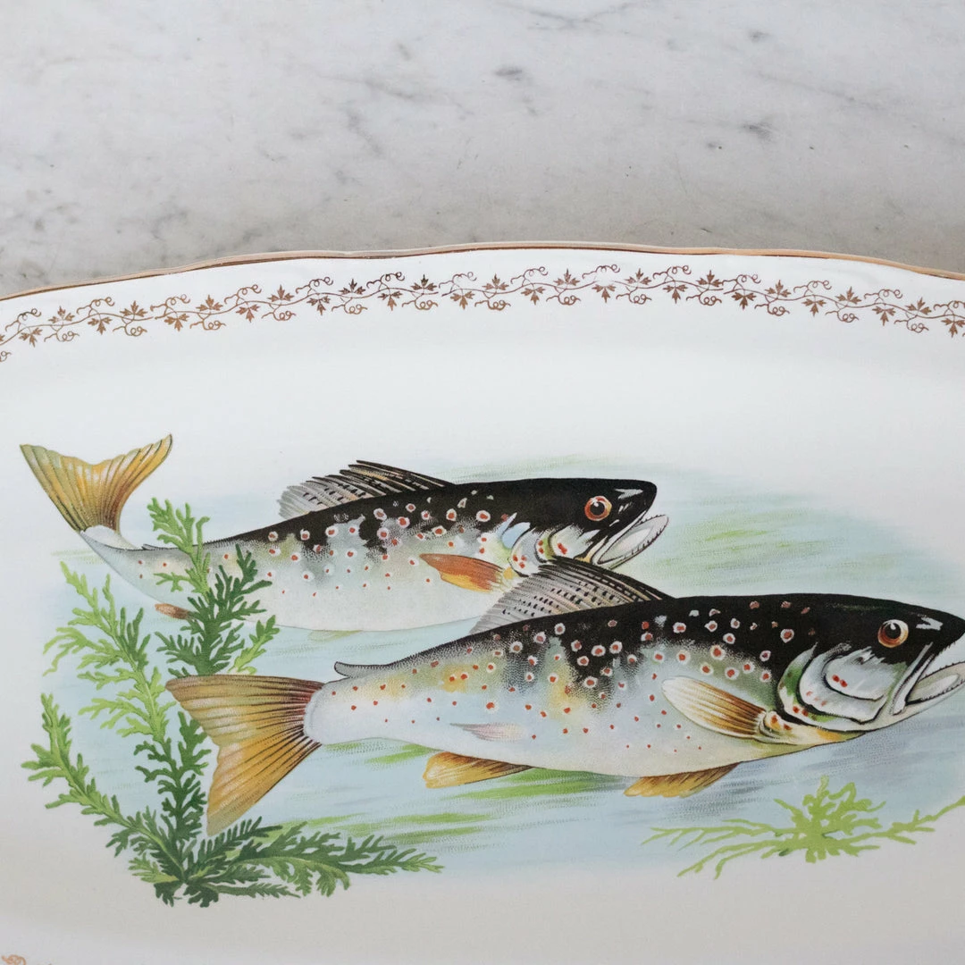 This style of fish platter is a French classic.ย We love the extremely detailed rendering of fish with the pretty gold border.ย ย