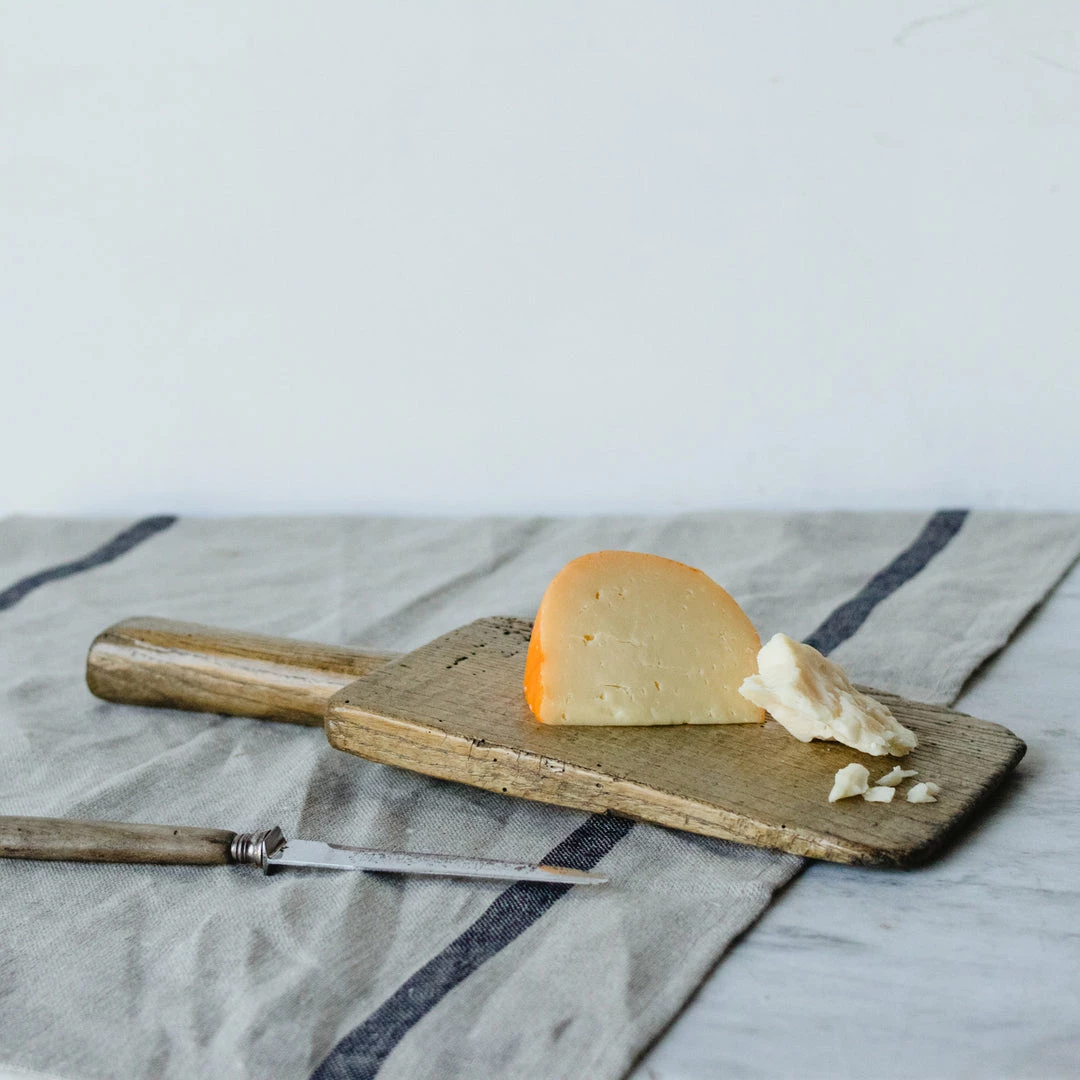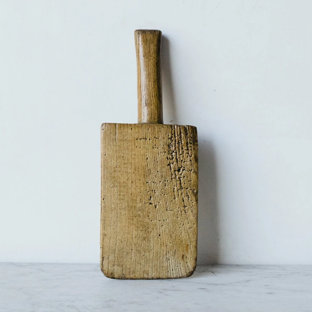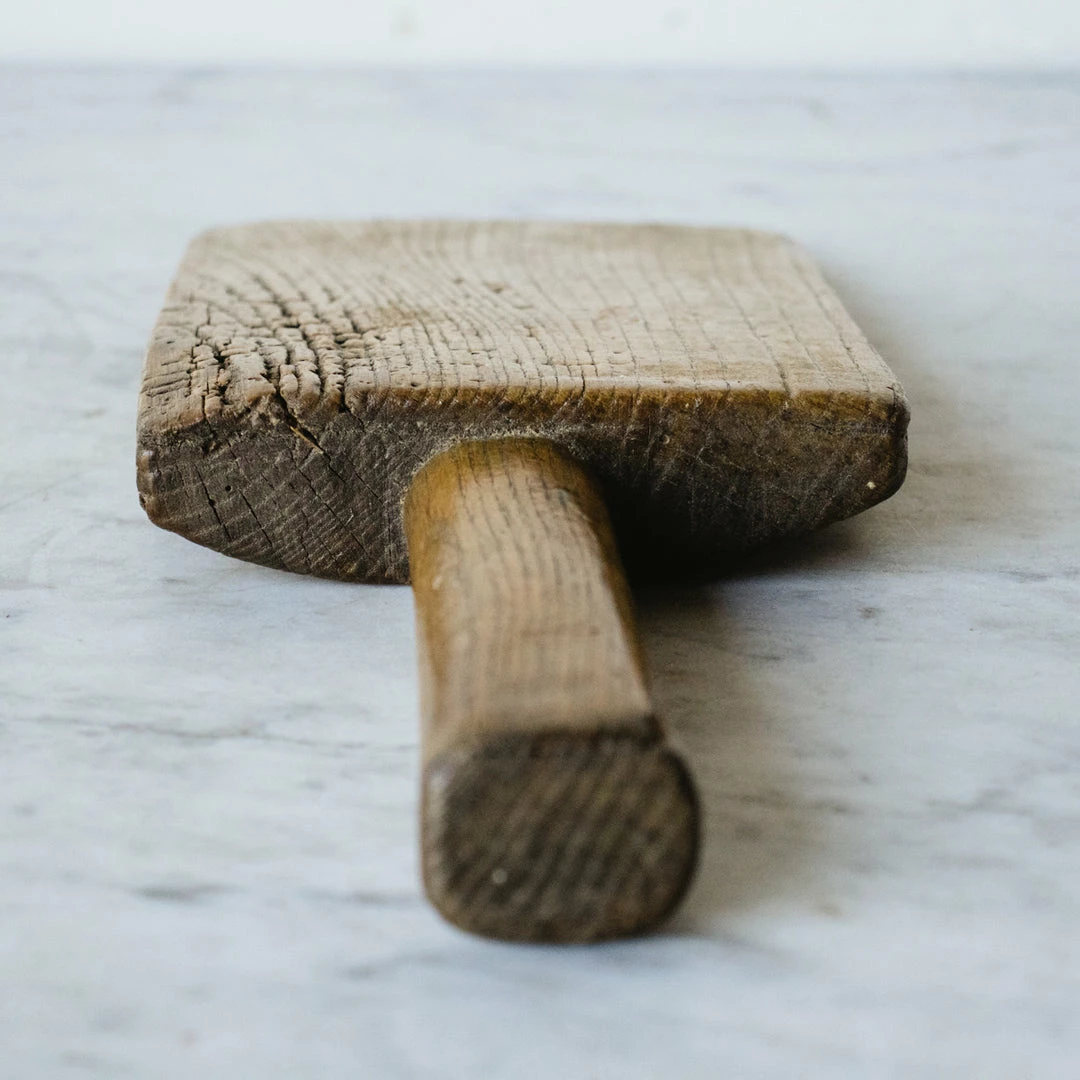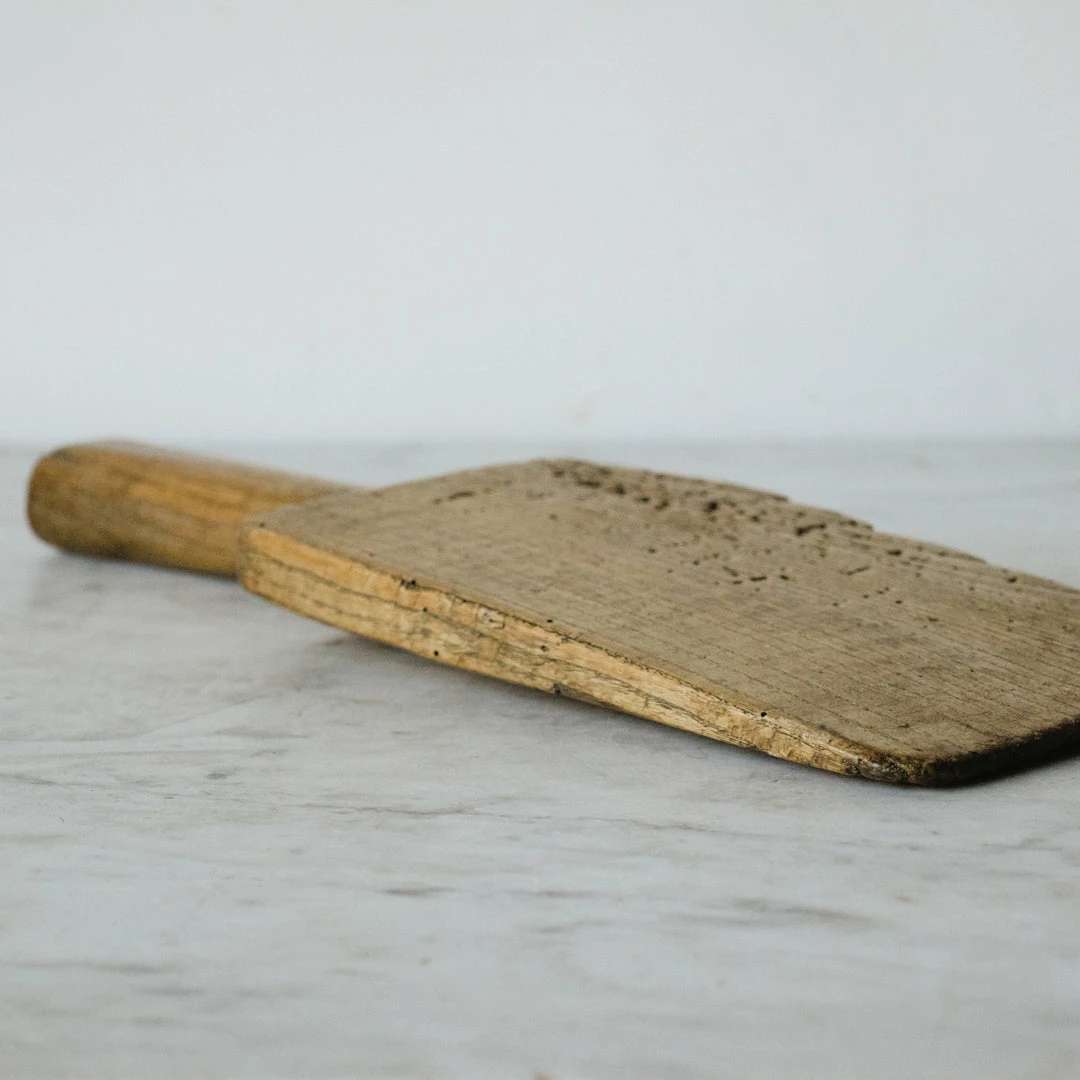This board was hand carved from a single piece of wood.ย ย You can see the marks of time and use from years spent in a French kitchen.ย ย Perfect for your cheese board, or butter for your baguette.