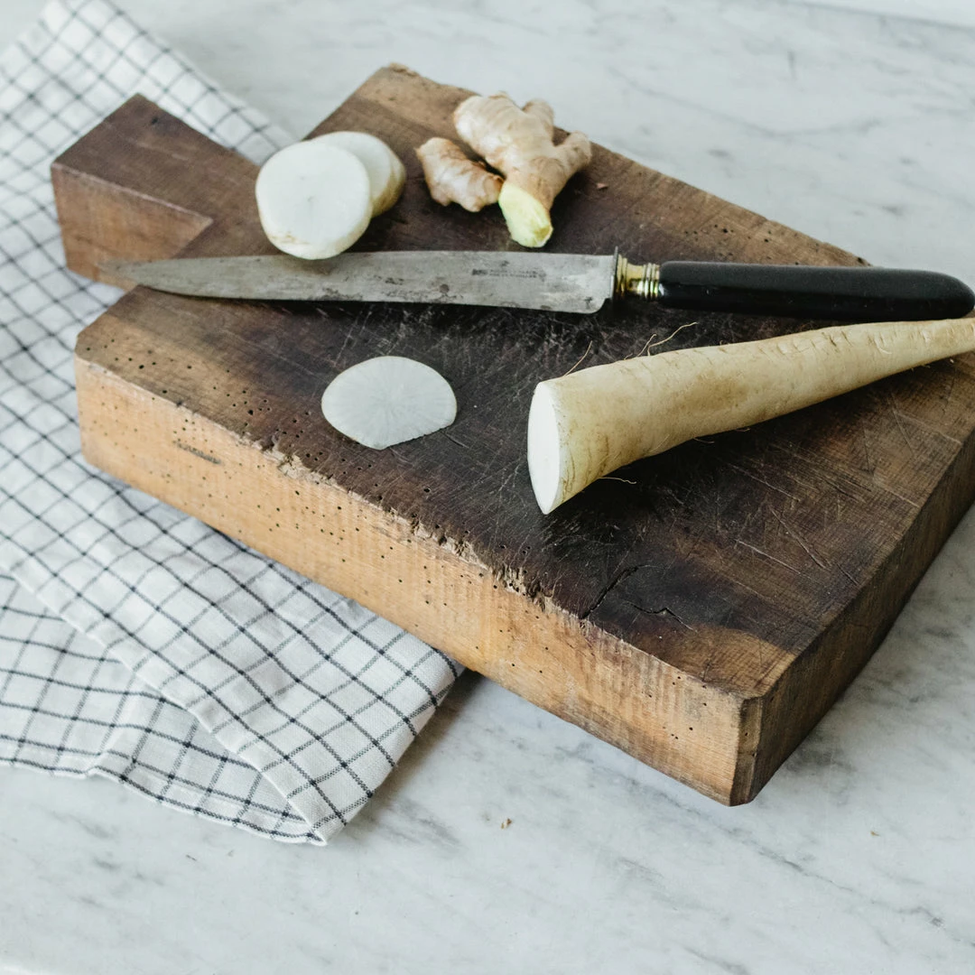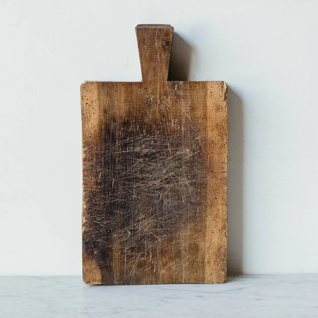 This board was hand carved from a single piece of wood. You can see the marks of time and use from years spent in a French kitchen. Perfect for your cheese board, or butter for your baguette.