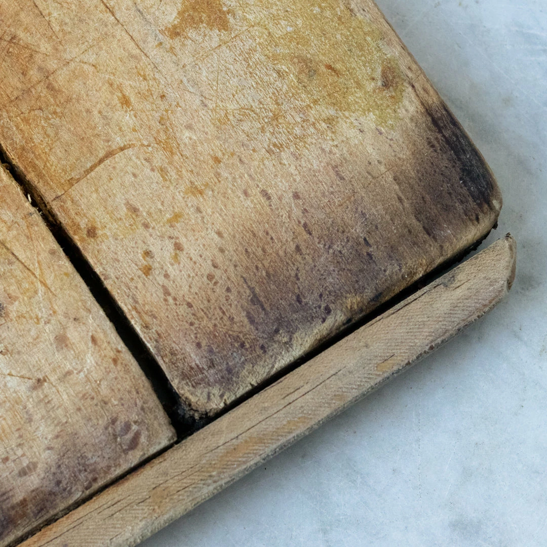 French bread boards are the finest you can find. Each one is carved from a single piece of heavy wood. After years of use each of these boards has its own patina and unique details. We love them in a pretty stack in our cupboard or leaning beside our sink.