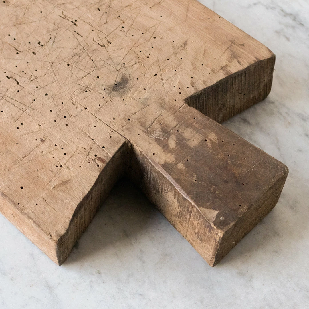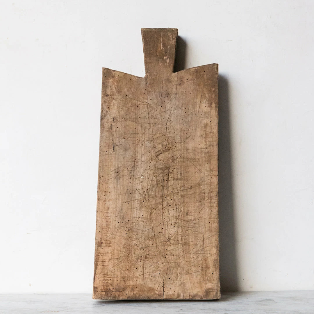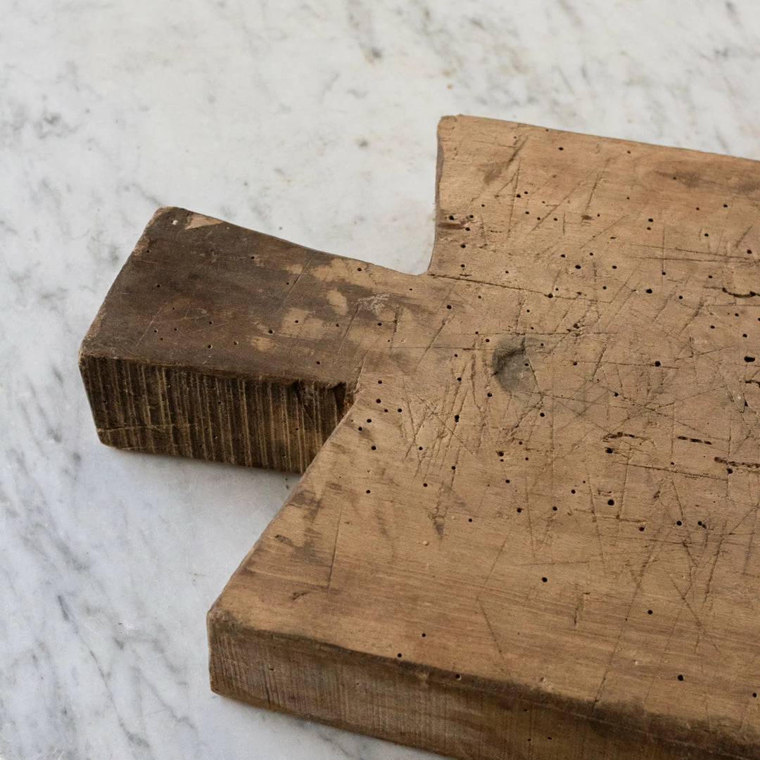 French bread boards are the finest you can find. Each one is carved from a single piece of heavy wood. After years of use each of these boards has its own patina and unique details. We love them in a pretty stack in our cupboard or leaning beside our sink.