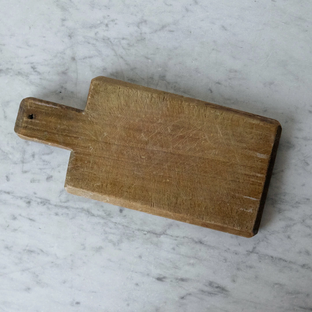 French bread boards are the finest you can find. Each one is carved from a single piece of heavy wood. After years of use each of these boards has its own patina and unique details. We love them in a pretty stack in our cupboard or leaning beside our sink.