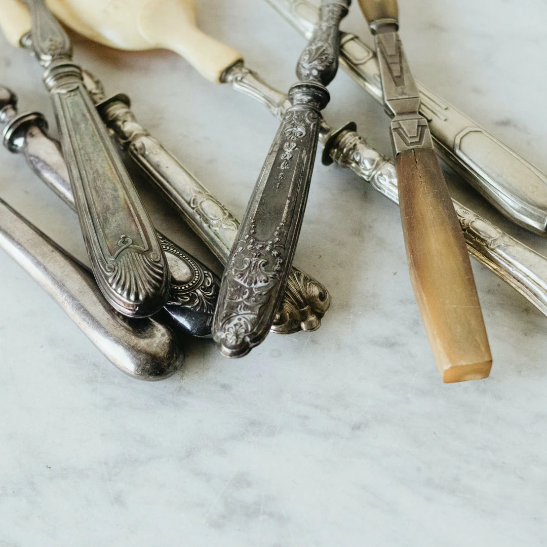 We found this beautiful serving set in a flea market in Lyon. They’re like jewelry for your table.