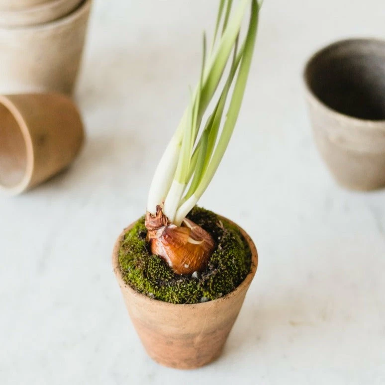 These little vintage pots are so cute. And perfect to make a place card holder on your table, or just line up on your windowsill to bring a little happy green to your view. We found them in a flea market in Lyon.