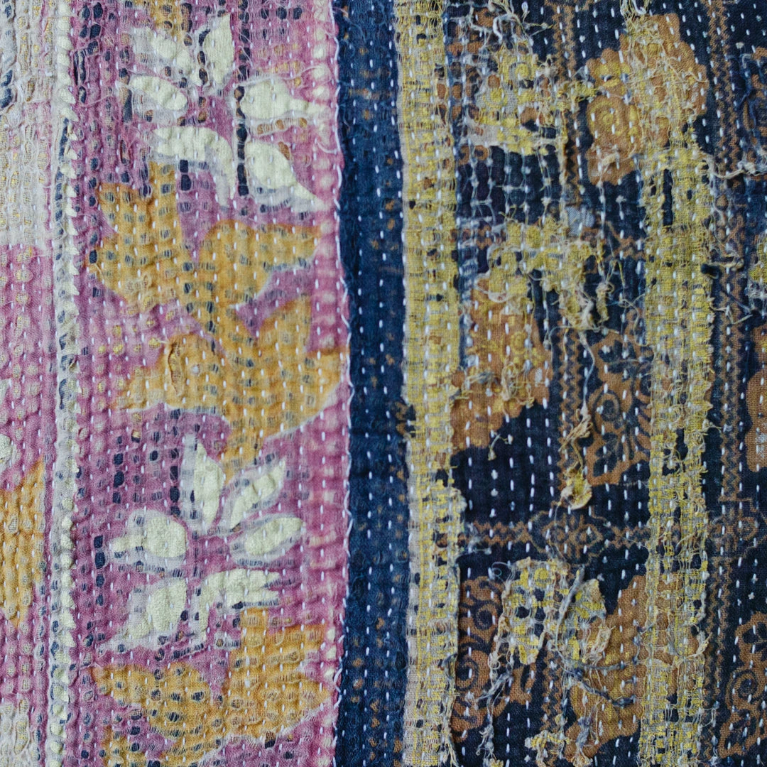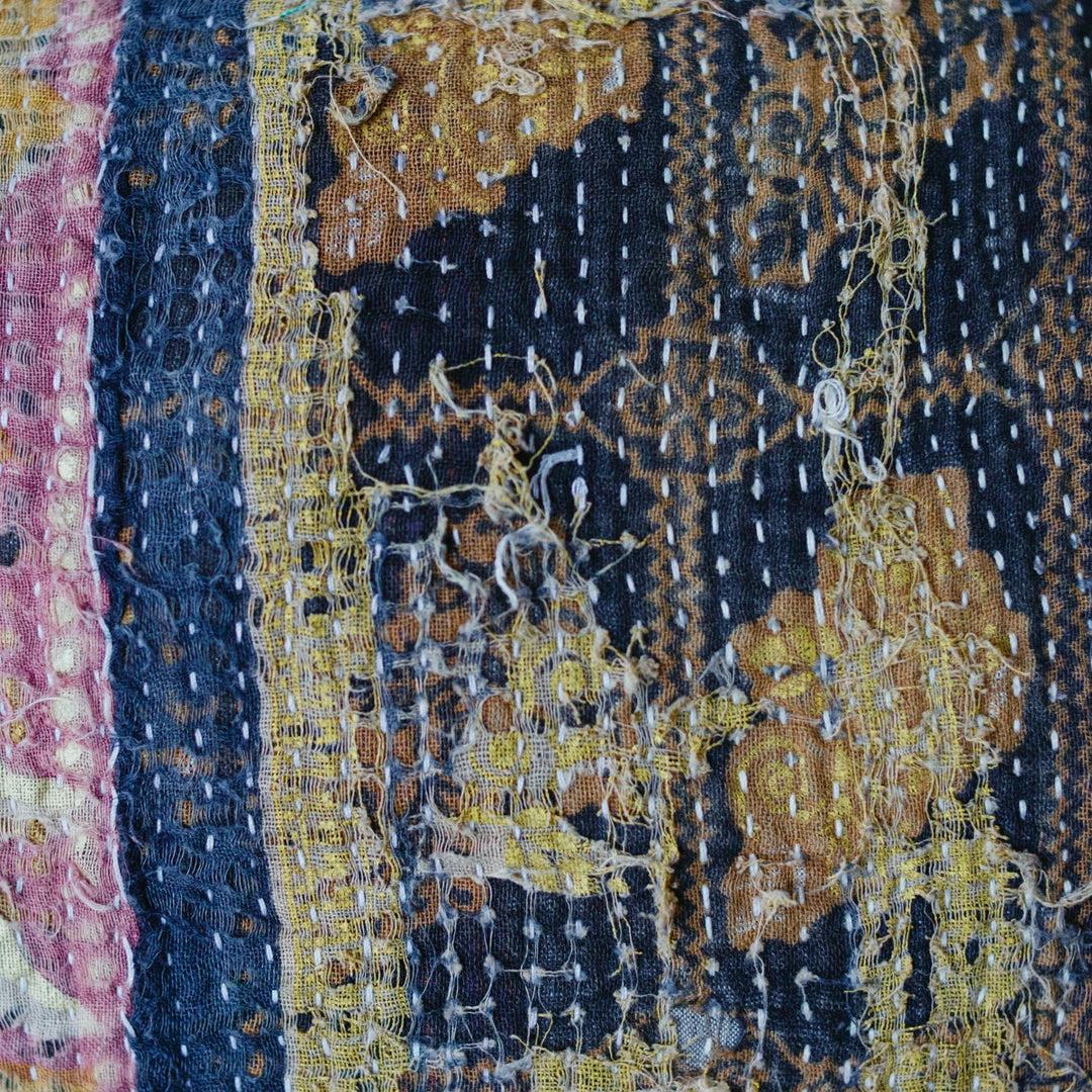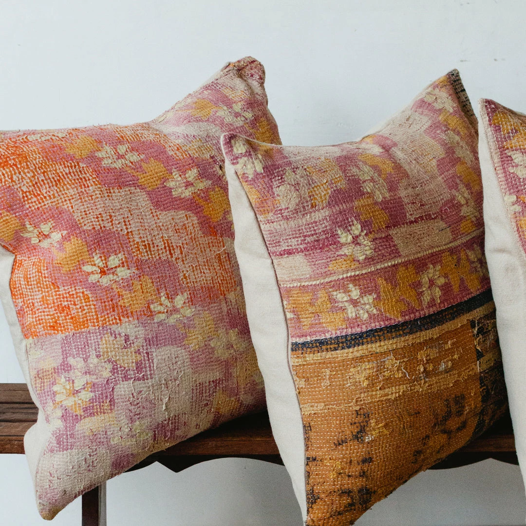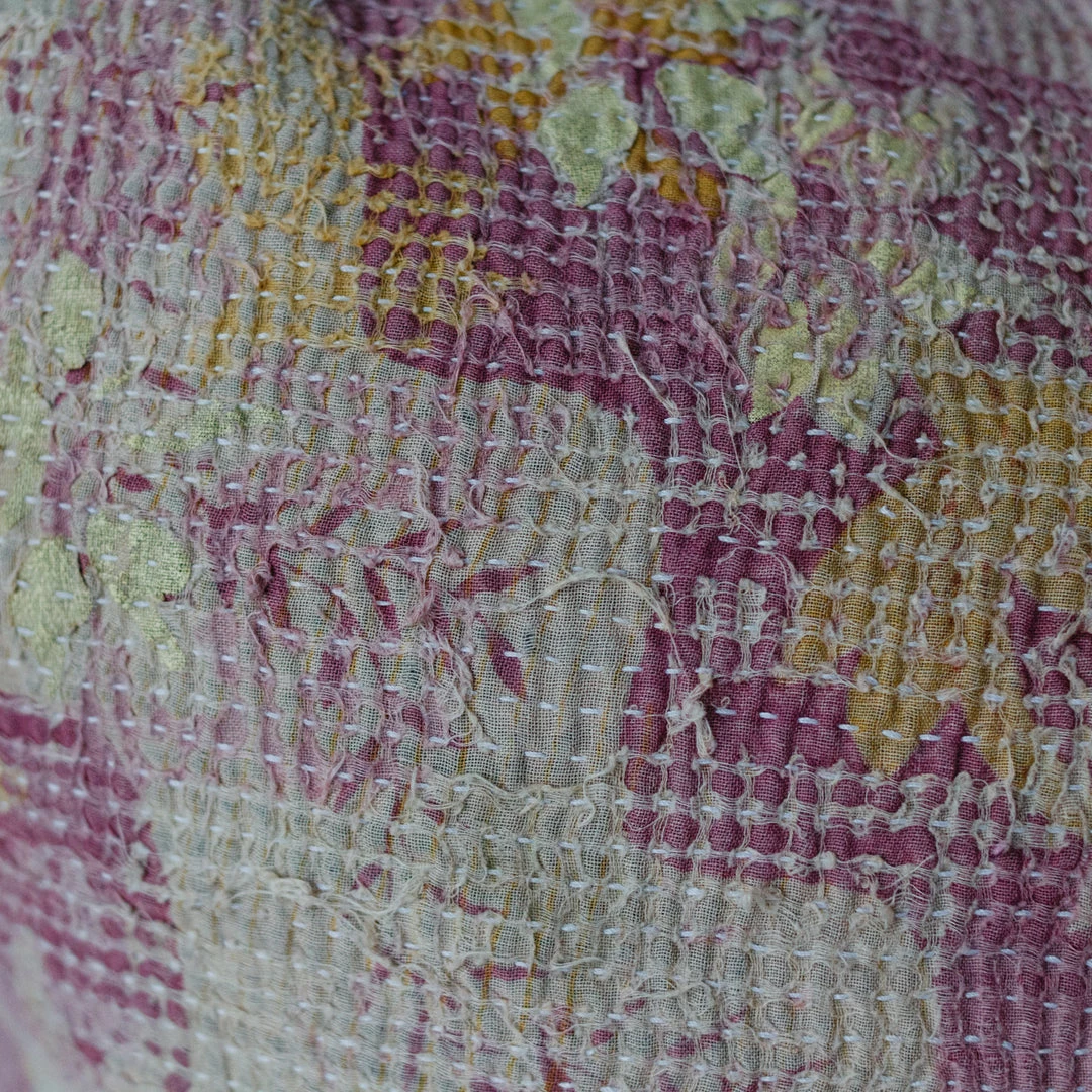 A kantha quilt is a traditional Indian textile hand stitched from vintage saris. We love the pretty color and pattern, and unique texture found in each pillow cover.