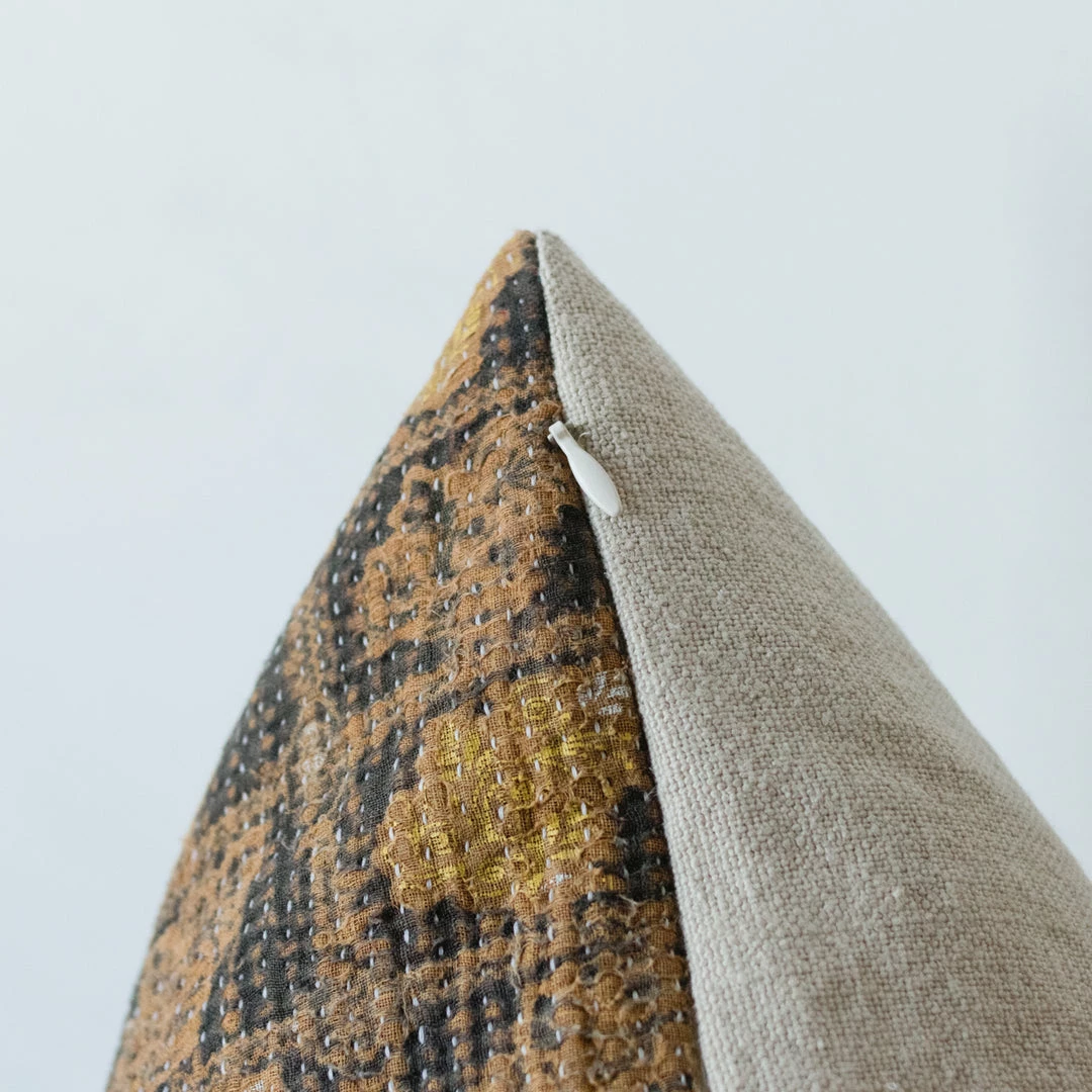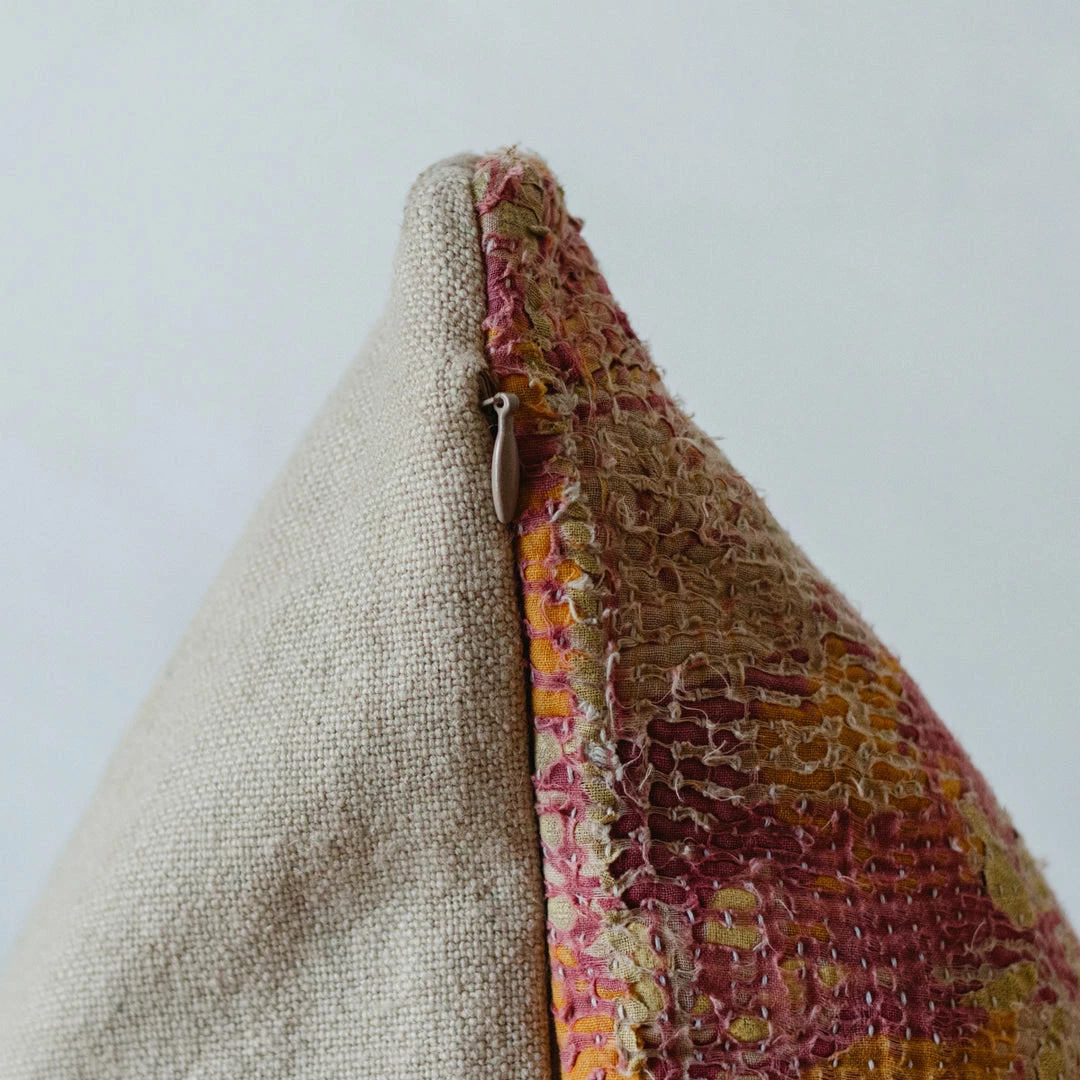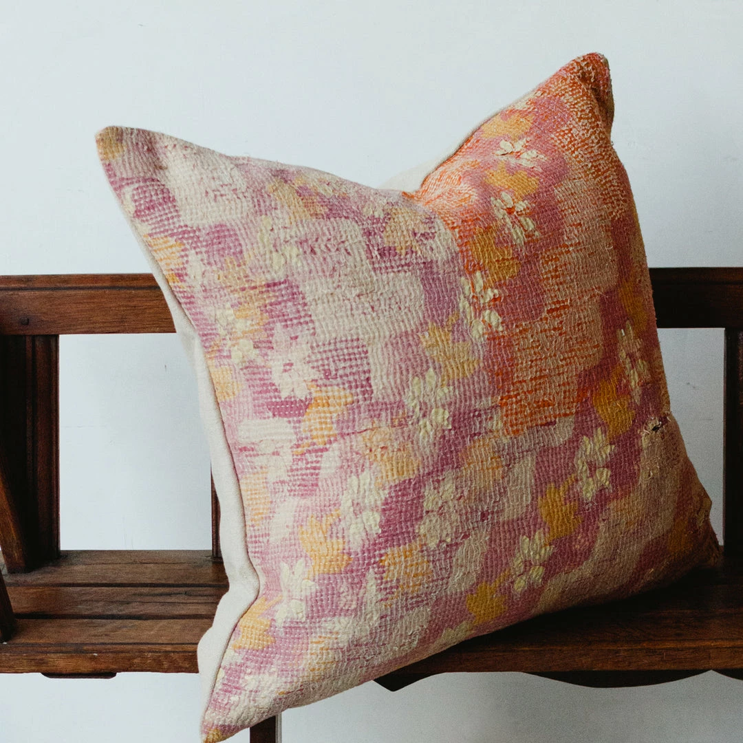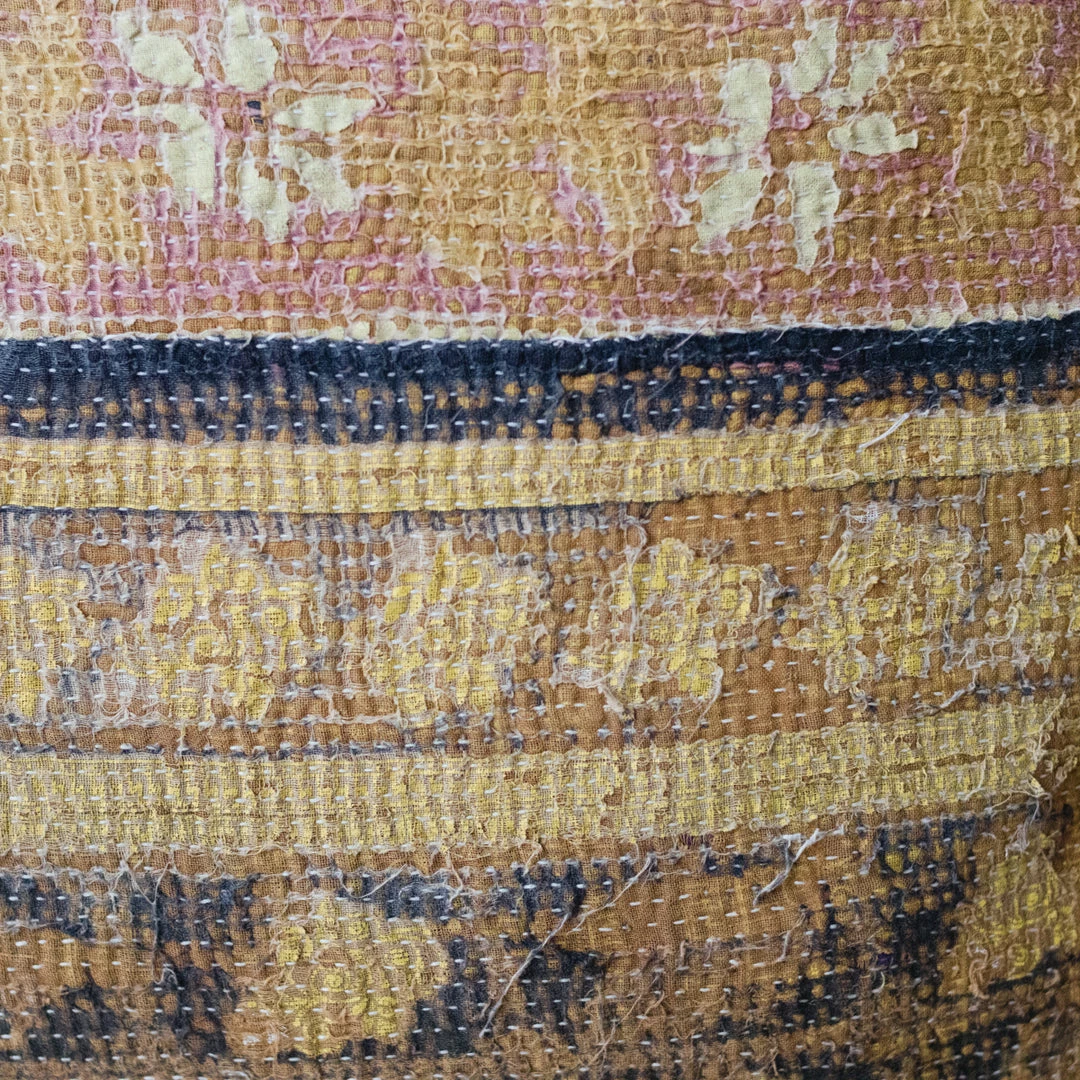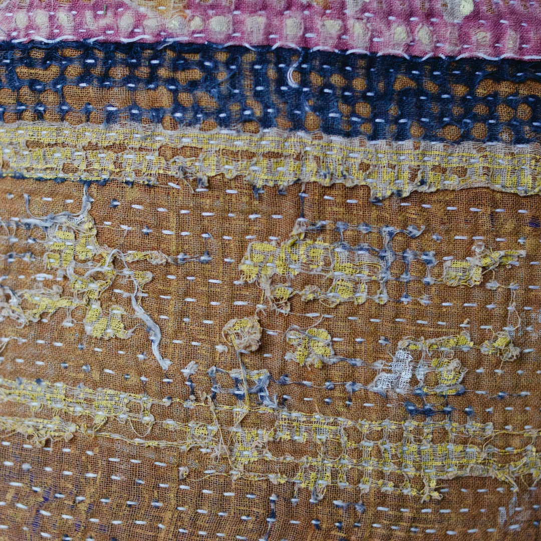 A kantha quilt is a traditional Indian textile hand stitched from vintage saris. We love the pretty color and pattern, and unique texture found in each pillow cover.