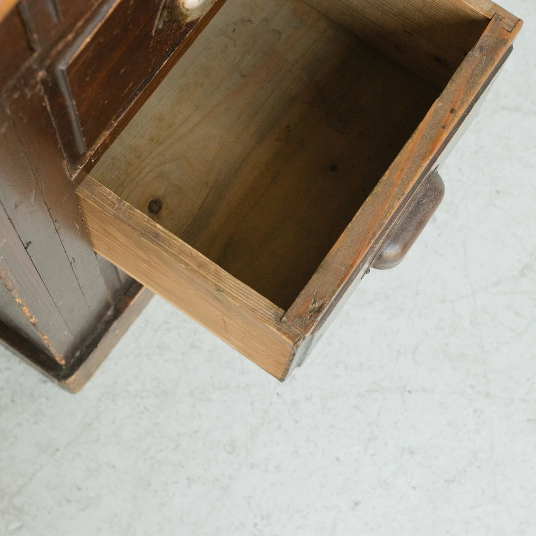 - The key to the center drawer has long ago been lost, but the drawer opens and closed just fine without the key.