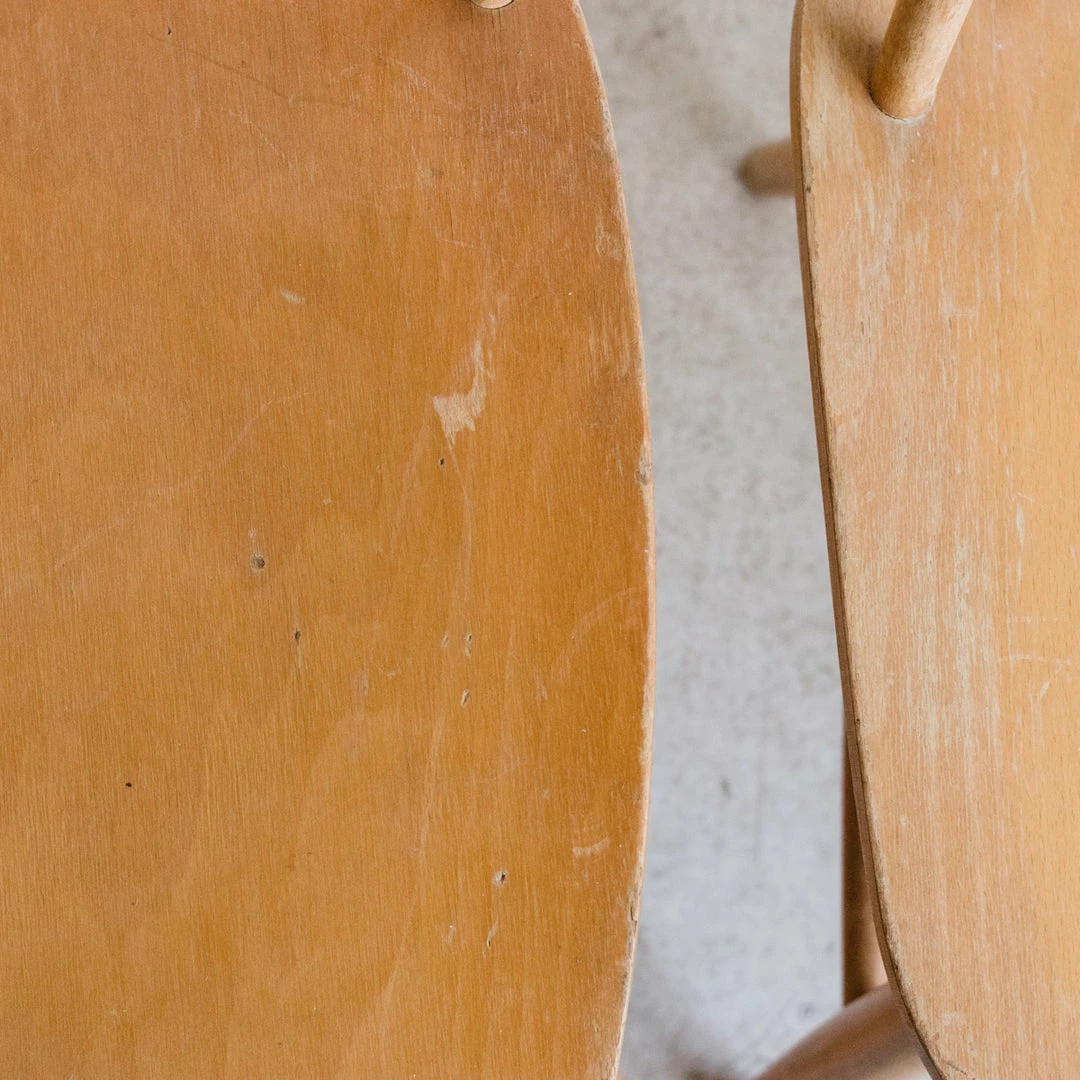 Each chair has the marks of time and use typical in a 1950s dining chair.ย ย