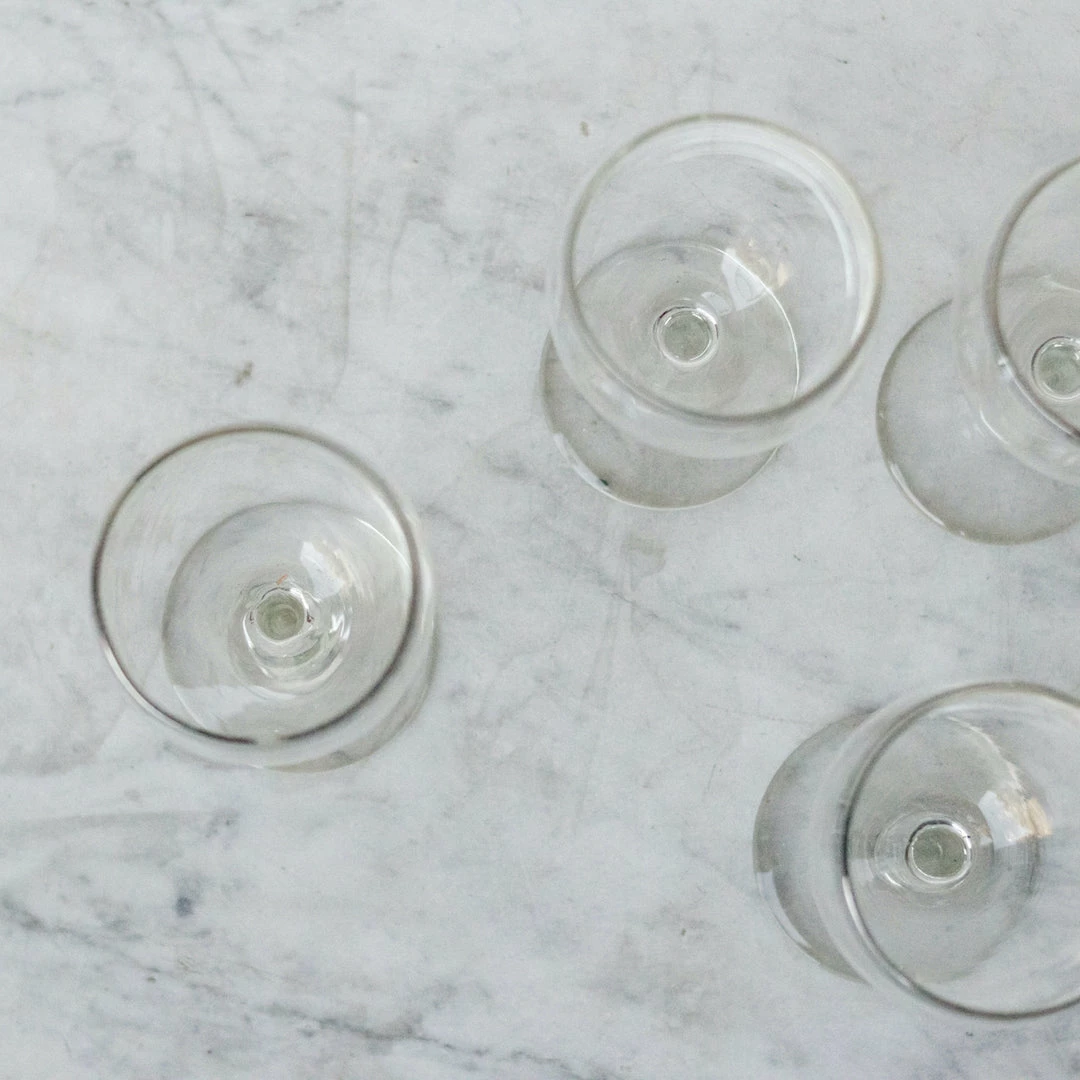 These bistro glasses were used in restaurants in the 1950s. ย They’re a beautiful tapered shape, available in three sizes and made of pretty, delicate glass. ย We love them. ย