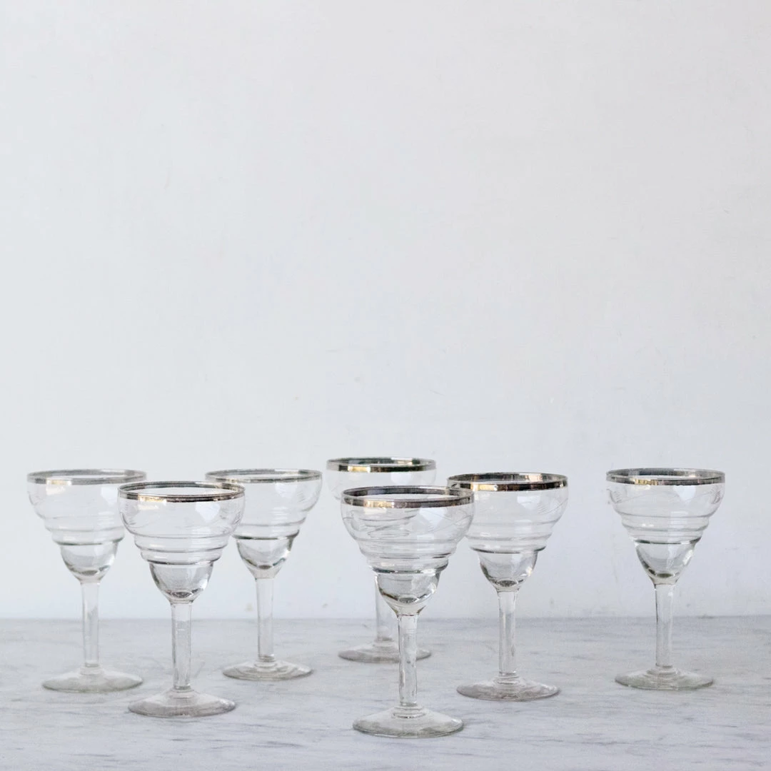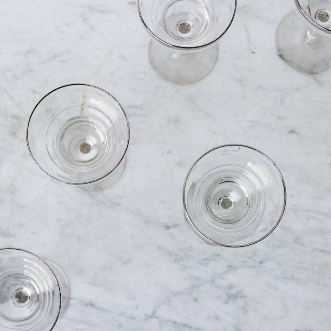 These bistro glasses were used in restaurants in the 1950s. They’re a beautiful tapered shape, available in three sizes and made of pretty, delicate glass. We love them.