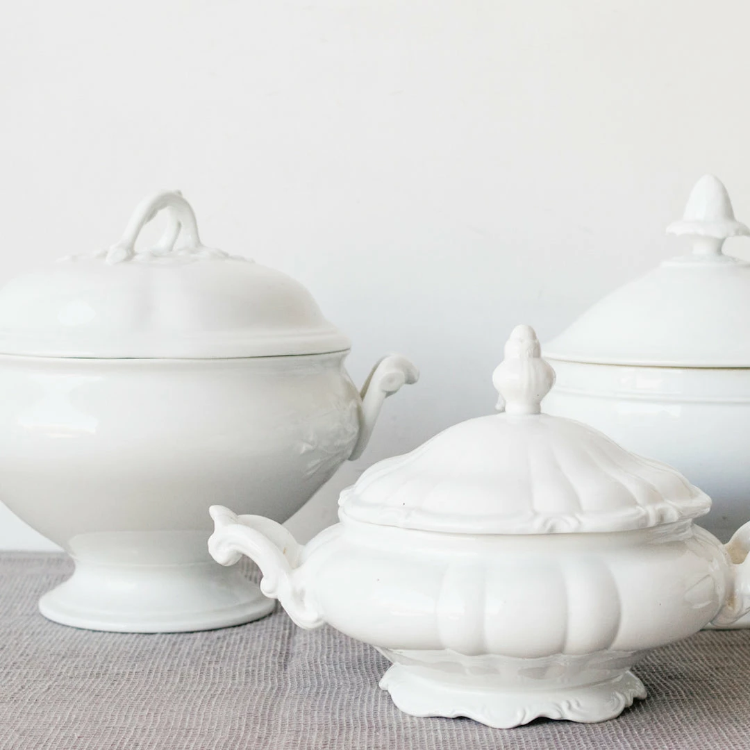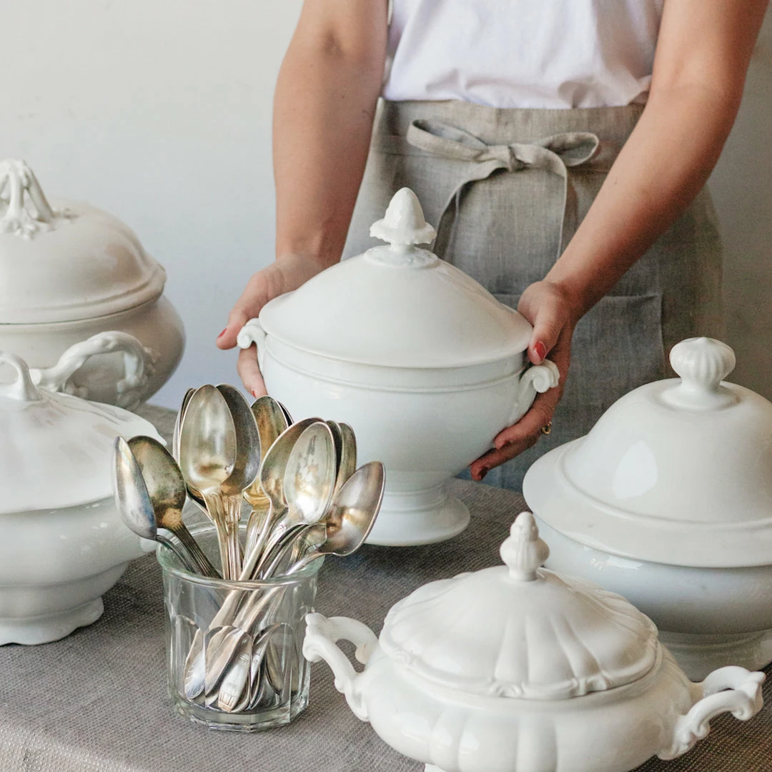 Every home needs a collection of beautiful basic serving pieces. Why not go all out and make them glamorous vintage pieces that you can hand down for generations? Each of these serving pieces were found in a flea market in the French countryside, and each is unique and beautiful.