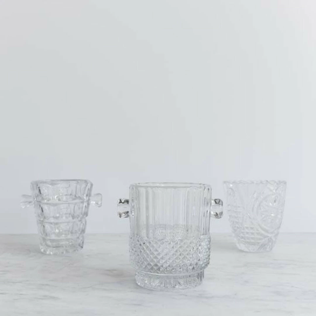 We collected these ice buckets from flea markets across the French countryside. ย Perfect for ice on your bar, or flowers for your hostess. ย