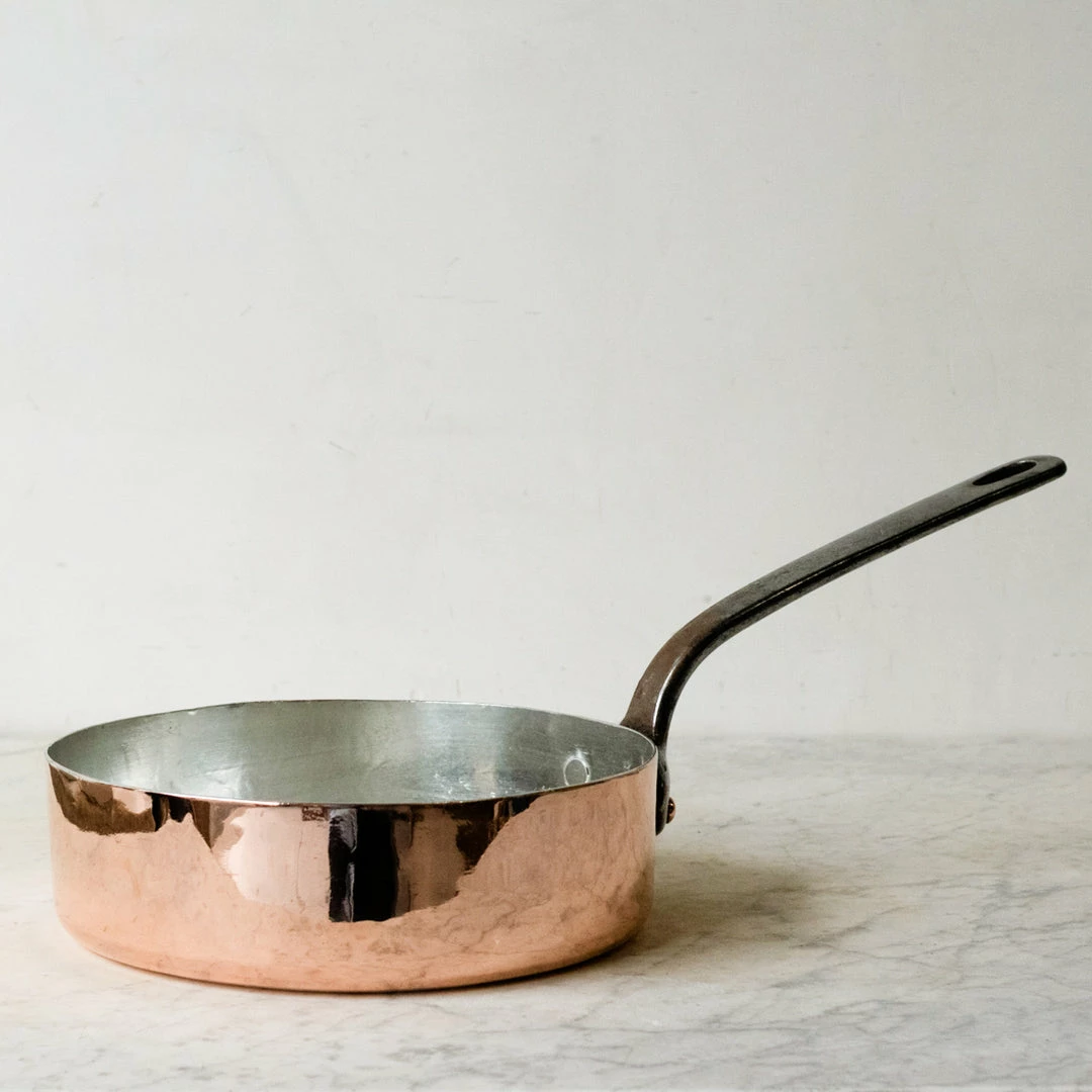 We found this beautiful saucier in a flea market in Lyon.ย It’sย stamped with a very chic Parisianย maker’s mark.