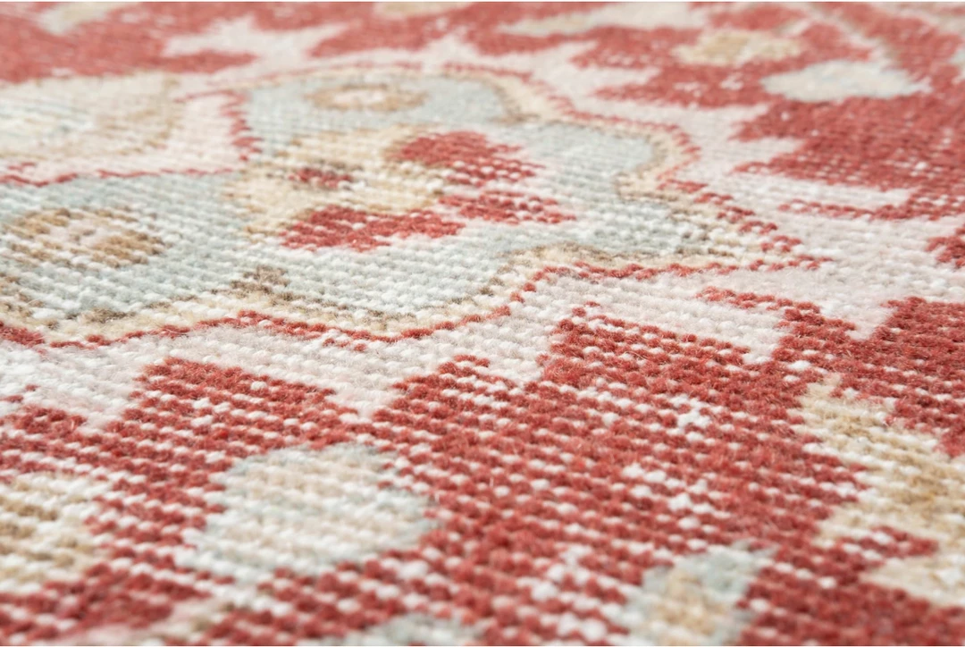 - A crosshatched fade from gentle wear over time produces a soft, distressed look, muting the original color palette